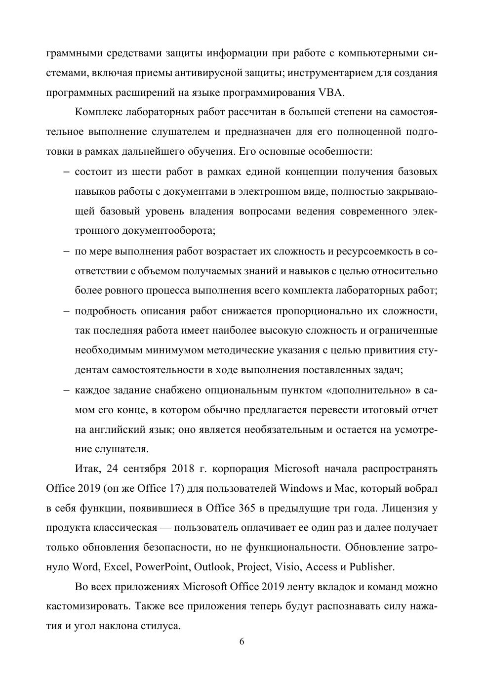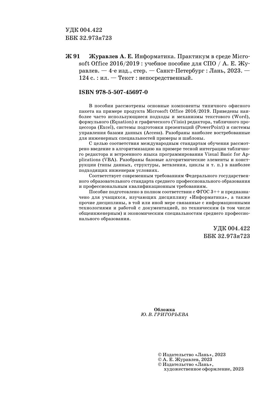 В пособии рассмотрены основные компоненты типичного офисного пакета на примере продукта Microsoft Office 2016. Приведены наиболее часто использующиеся подходы и механизмы текстового (Word), формульного (Equation) и графического (Visio) редактора, табличного процессора (Excel), системы подготовки презентаций (PowerPoint) и системы управления базами банных (Access). Разобраны наиболее востребованные для инженерных специальностей примеры и шаблоны.С целью соответствия международным стандартам обучения рассмотрено введение в алгоритмизацию на примере тесной интеграции табличного редактора и встроенного языка программирования Visual Basic for Applications (VBA). Разобраны базовые алгоритмические элементы и конструкции (типы данных, структуры, ветвления, циклы и т. п.) в наиболее подходящих инженерам условиях.Пособие предназначено для студентов технических направлений подготовки академического и прикладного бакалавриата, изучающих дисциплину «Информатика» и напрямую не связанных со сферой IT, таких как «Строительство», в том числе профиля «Гидротехническое строительство», «Электроэнергетика и электротехника», в том числе профиля «Электропривод и автоматика», «Природообустройство и водопользование», в том числе профиля «Комплексное использование и охрана водных ресурсов», «Эксплуатация транспортно-технологических машин и комплексов», в том числе профиля «Эксплуатация перегрузочного оборудования портов и транспортных терминалов», «Управление водным транспортом и гидрографическое обеспечение судоходства», в том числе профиля «Управление водными и мультимодальными перевозками», «Кораблестроение, океанотехника и системотехника объектов морской инфраструктуры», в том числе профилей «Кораблестроение» и «Судовые энергетические установки», всех форм обучения в соответствии с ФГОС 3.0.