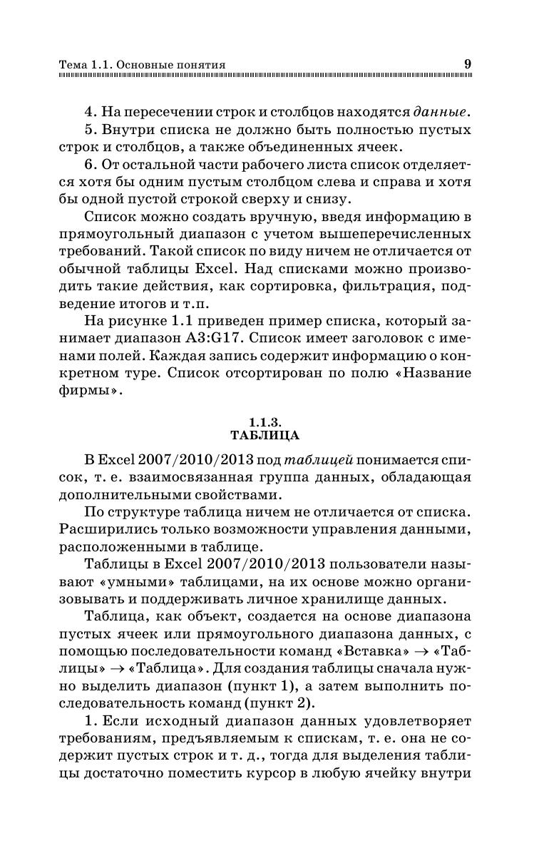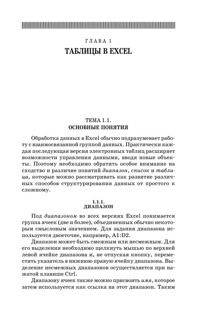 Книга посвящена эффективному использованию инструментов приложения Excel для обработки и анализа многомерных данных, с целью их систематизации, выявления характера и структуры взаимосвязей. Пройдя путь от структурирования данных до создания простейшей базы данных, на основе которой можно строить различные сводные таблицы для нахождения ответов на поставленные вопросы, читатель научится извлекать необходимую информацию и знание из множества данных. Дополнительно к этому, в книге рассматривается одна из наиболее востребованных задач – статистическая обработка данных, полученных в результате случайного эксперимента. Особое внимание уделено визуализации данных с помощью диаграмм и дополнительных возможностей, предоставляемых в последних версиях Excel. Книга адресована студентам обучающимся в колледжах по образовательным программам среднего профессионального образования. Она может быть полезна всем, кто заинтересован в получении мощного и эффективного инструмента для выполнения всевозможных математических операций при помощи компьютера. Соответствует современным требованиям Федерального государственного образовательного стандарта среднего профессионального образования и профессиональным квалификационным требованиям.