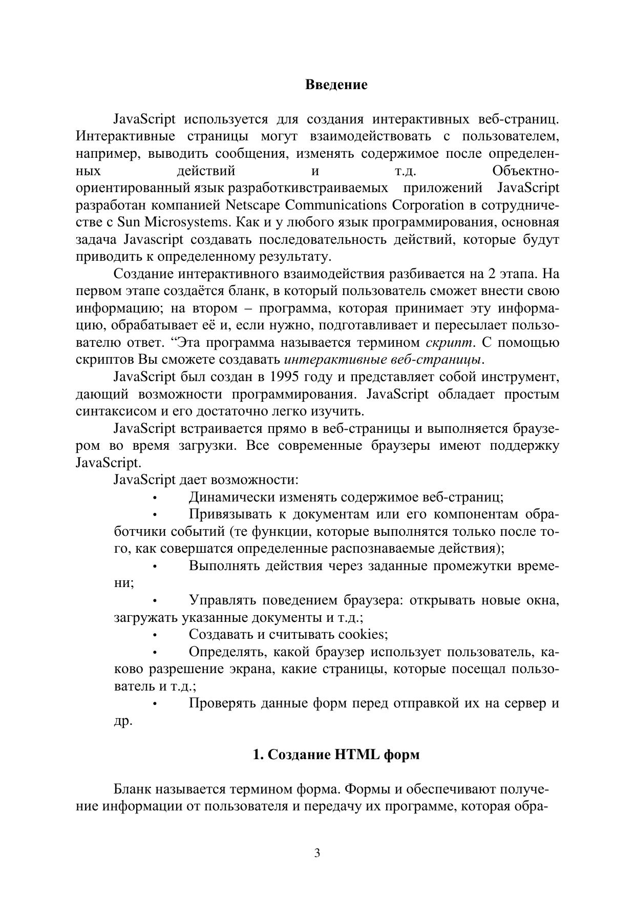 Пособие содержит основы работы с полями форм и программирования на языке JavaScript. Рассмотрены примеры использования интерактивного взаимодействия.