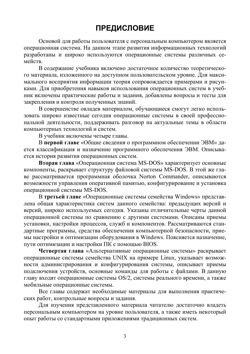 Изложенный в учебнике материал охватывает широкий круг вопросов в области операционных систем, информатики и системного программного обеспечения.В учебнике объединены информационные теоретические материалы, практические работы, контрольные вопросы и тестовые задания по операционным системам и системному программному обеспечению, а также отдельно выделены основные понятия и определения. В сжатой, но при этом доступной для восприятия форме изложены все разделы программы курса.Предлагаемый учебный материал соответствует учебному плану и рабочим программам по включенным предметам в полном объеме. Рекомендуется использовать на уроках-лекциях, уроках контроля знаний, при изучении предметов для специальностей, связанных с изучением компьютерной деятельности при самостоятельном, заочном, и непосредственном обучении. Соответствует современным требованиям Федерального государственного образовательного стандарта среднего профессионального образования и профессиональным квалификационным требованиям. Предназначен для широкого круга читателей: от начинающих изучение операционных систем и информатики до специалистов на уровне профессионально-технического и среднего специального образования.