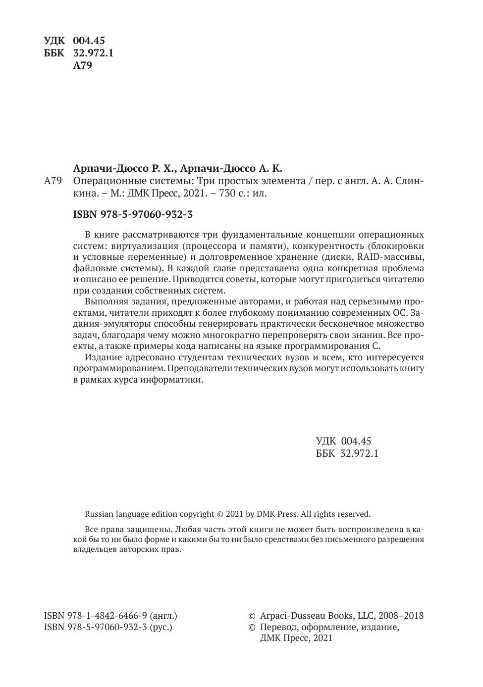 Ремзи и Андреа Арпачи-Дюссо — профессора информатики Висконсинского университета в Мэдисоне. Занимаются исследованиями в области вычислительных систем более 20 лет. Опубликовали свыше 100 работ по производительности и надежности современных ОС, уделяя особое внимание файловым системам и системам хранения. Их труды были удостоены многочисленных наград, а некоторые новаторские предложения вошли в современные версии Linux и BSD.