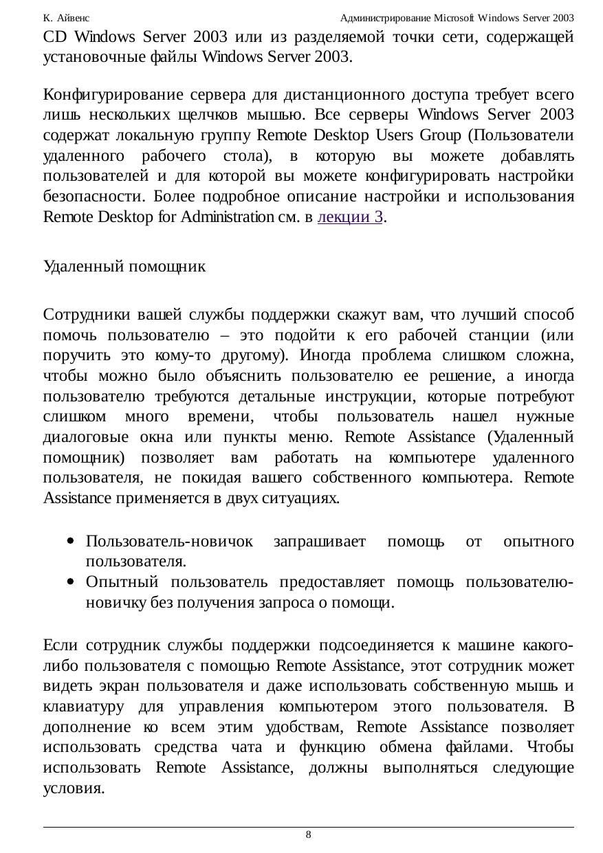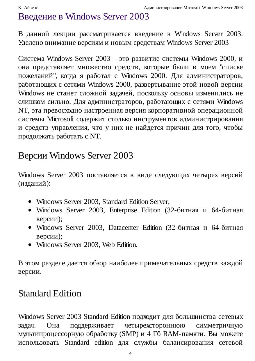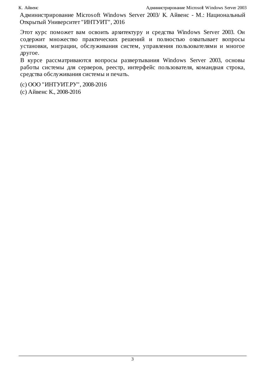 другое. В курсе рассматриваются вопросы развертывания Windows Server 2003, основы работы системы для серверов, реестр, интерфейс пользователя, командная строка, средства обслуживания системы и печать.