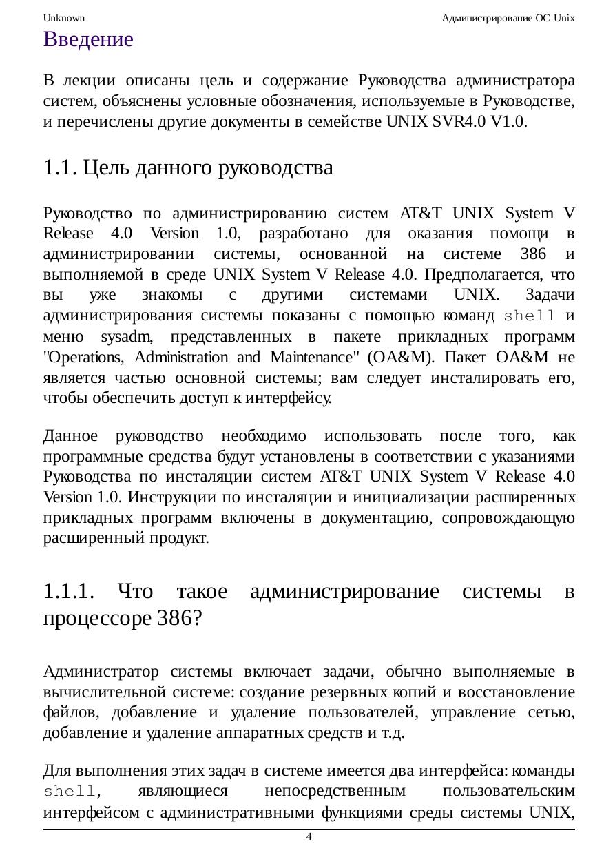 Руководство по администрированию систем UNIX System V, разработано для оказания помощи в администрировании. Рассматривается использование файловых систем, установка характеристик системы, управление портами, установка конфигурации сети, планирование автоматических заданий, использование принтеров, защита данных и другие вопросы администрирования.