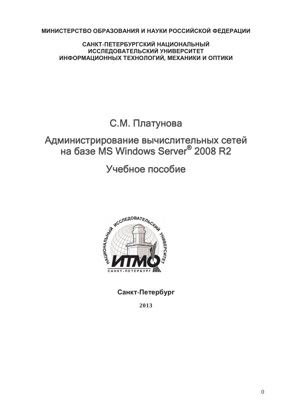 Администрирование вычислительных сетей на базе MS Winsows Server ® 2008 R2. Учебное пособие по дисциплине «Администрирование вычислительных сетей»
