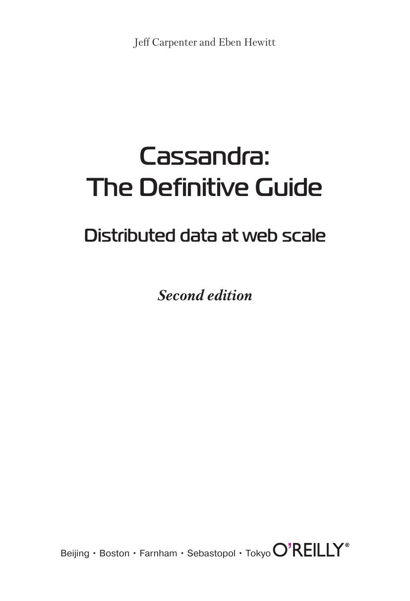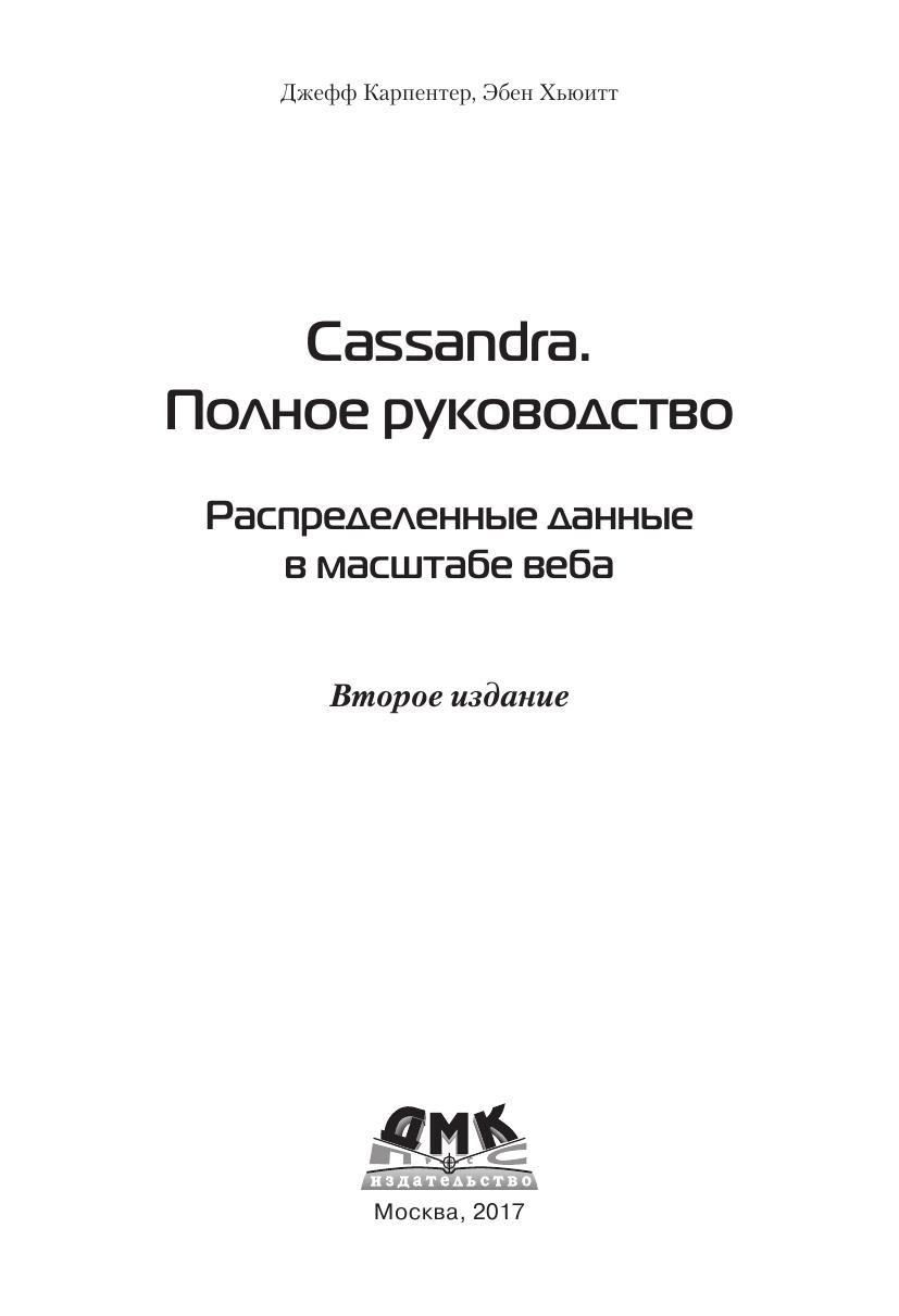 Из этой книги вы узнаете, как система управления базами данных Cassandra справляется с обработкой сотен терабайтов данных, работая в нескольких ЦОДах и сохраняя высокую доступность. Во втором издании, дополненном и охватывающем версию Cassandra 3.0, вы найдете технические детали и практические примеры, которые помогут запустить эту систему в боевых условиях. Авторы демонстрируют достоинства нереляционного дизайна Cassandra, уделяя особое внимание моделированию данных. Издание предназначено для разработчиков, администраторов баз данных и архитекторов, работающих с «большими данными» и стремящихся решить проблему масштабирования.
