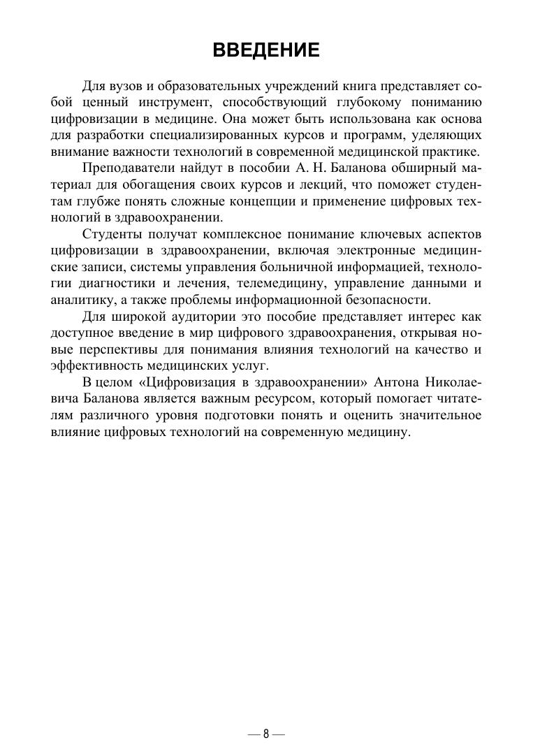 Данная книга является универсальным и актуальным учебным ресурсом, охватывающим ключевые аспекты применения цифровых технологий в медицине. Пособие предназначено для широкого круга читателей, включая студентов, преподавателей, медицинских специалистов и всех интересующихся сферой здравоохранения.