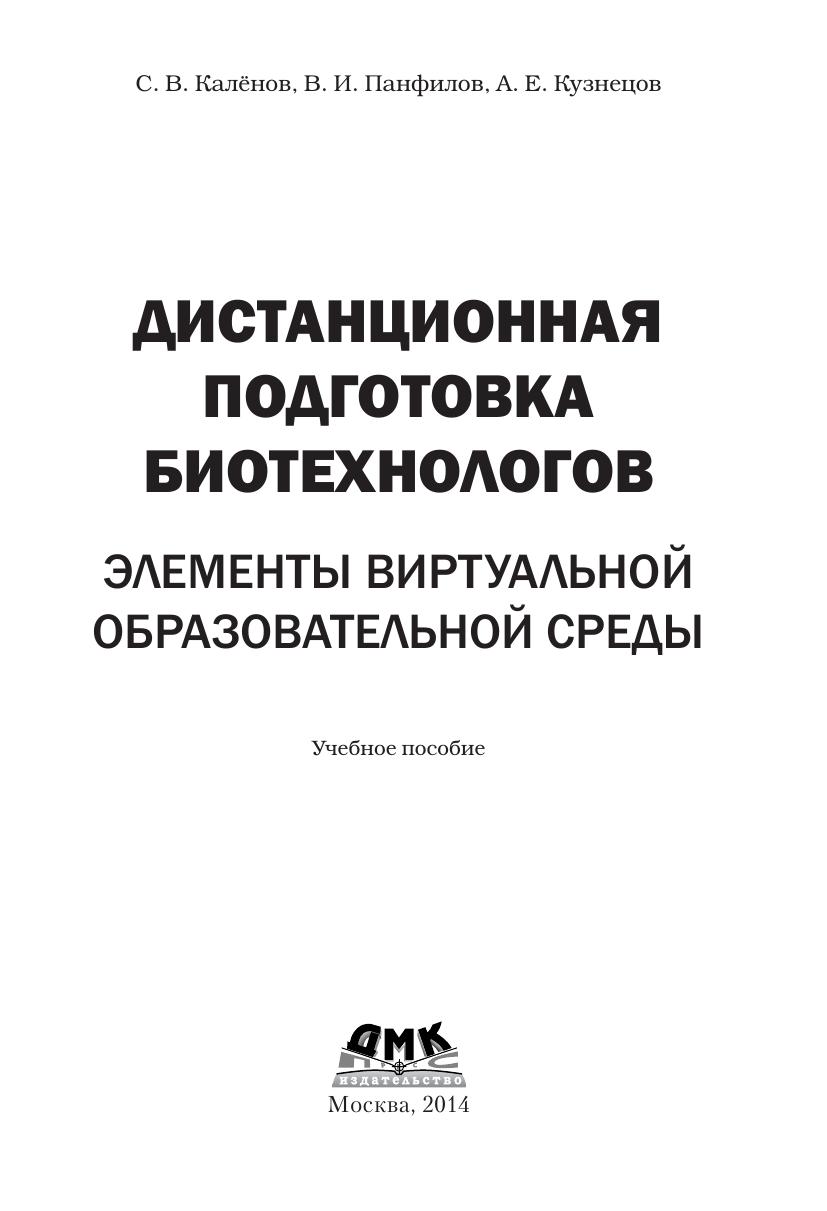 Дистанционная подготовка биотехнологов: элементы виртуальной образовательной среды