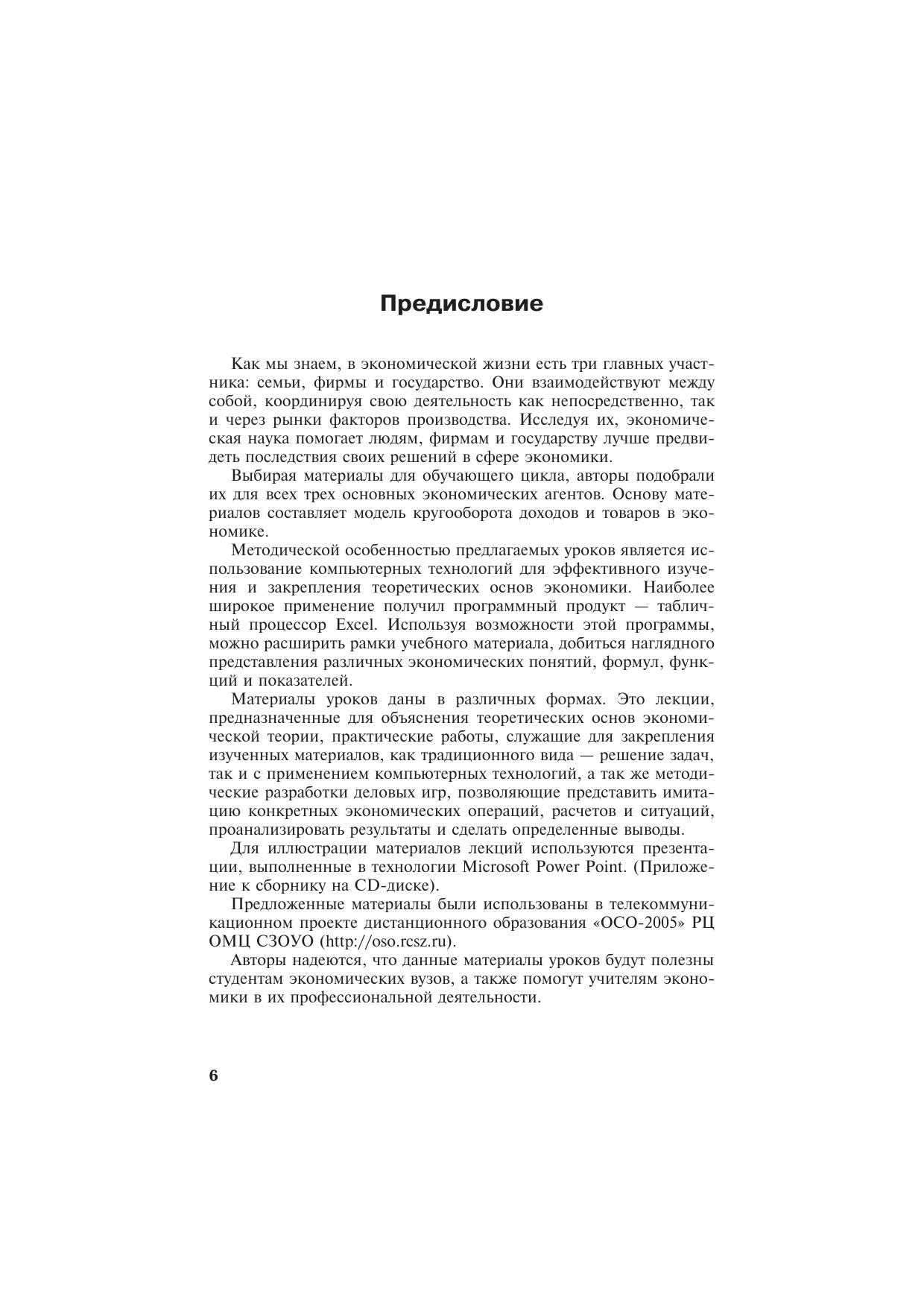 Книга представляет собой подборку уроков по вводному курсу экономики. В них рассмотрены основные проблемы макро- и микроэкономической теории. Даны определения основных понятий, наиболее важные теоретические положения проиллюстрированы рисунками, графиками, представлены основные расчетные формулы. Теоретический материал каждой темы сопровождается практической работой или методической разработкой деловой игры, а также вариантами контрольных практических работ, реализованных с помощью табличного процессора Microsoft EXCEL.Книга написана без привязки к конкретной среде программного продукта, поэтому все предлагаемые алгоритмы могут быть с успехом применены для различных версий Microsoft EXCEL. Материал книги изложен на основе самой современной методики обучающих дистанционных курсов в рамках проекта «Обучающие Сетевые Олимпиады» (ОСО-2006). Проект ОСО-2005 является номинантом международного конкурса «ИТ-образование в Рунете»