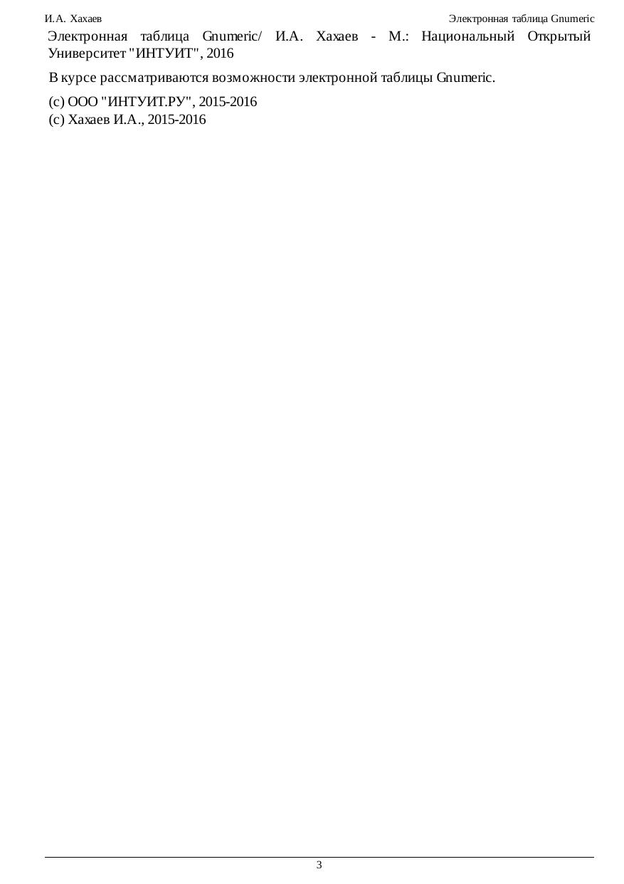 В курсе рассматриваются возможности электронной таблицы Gnumeric.