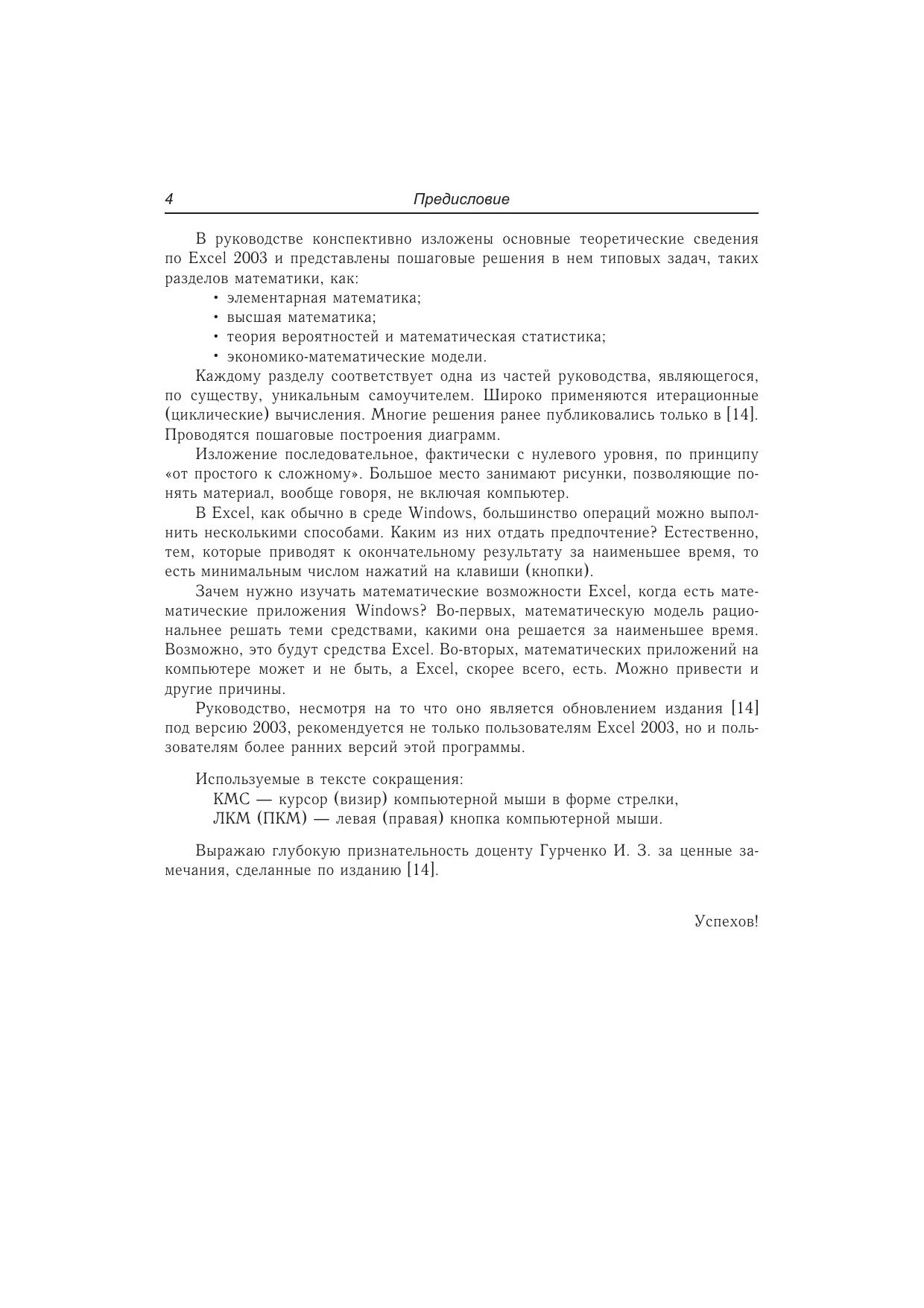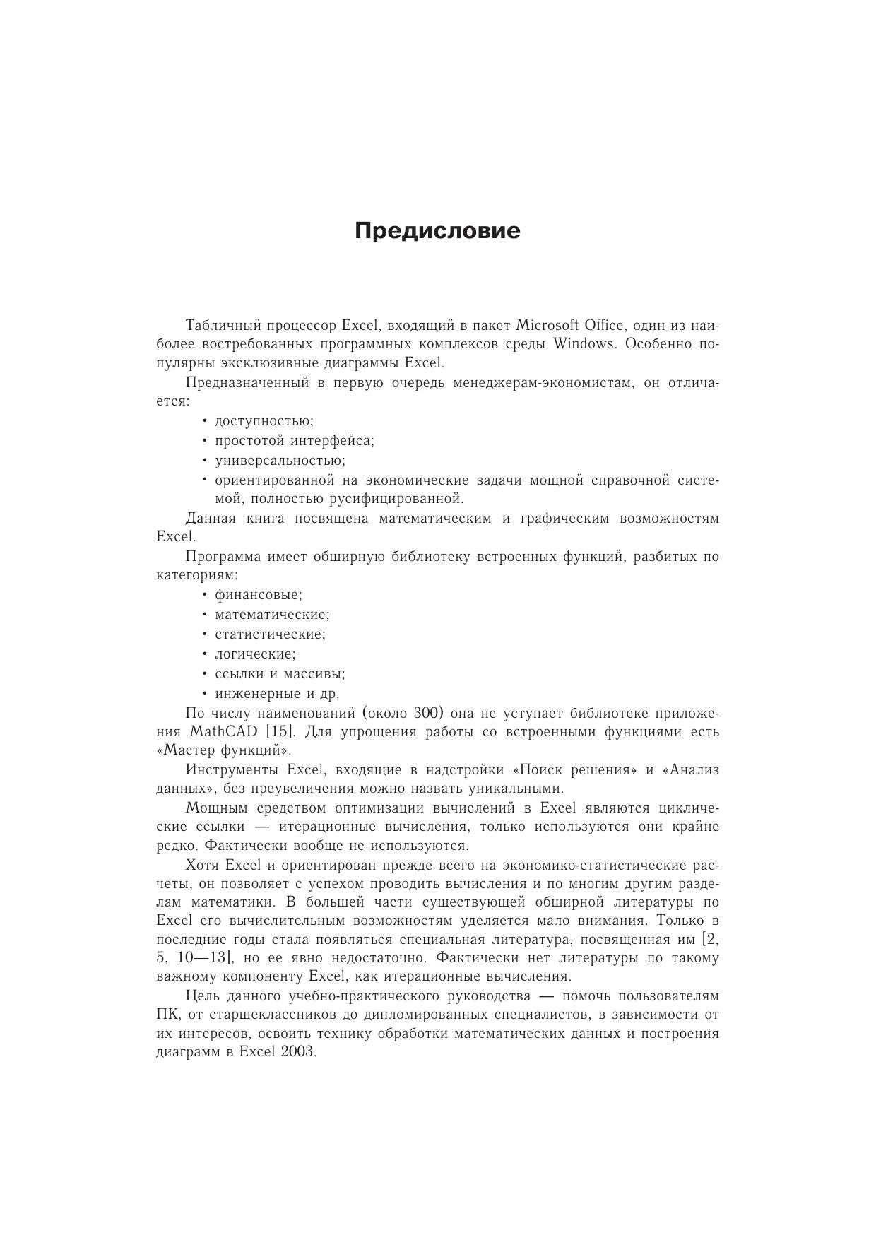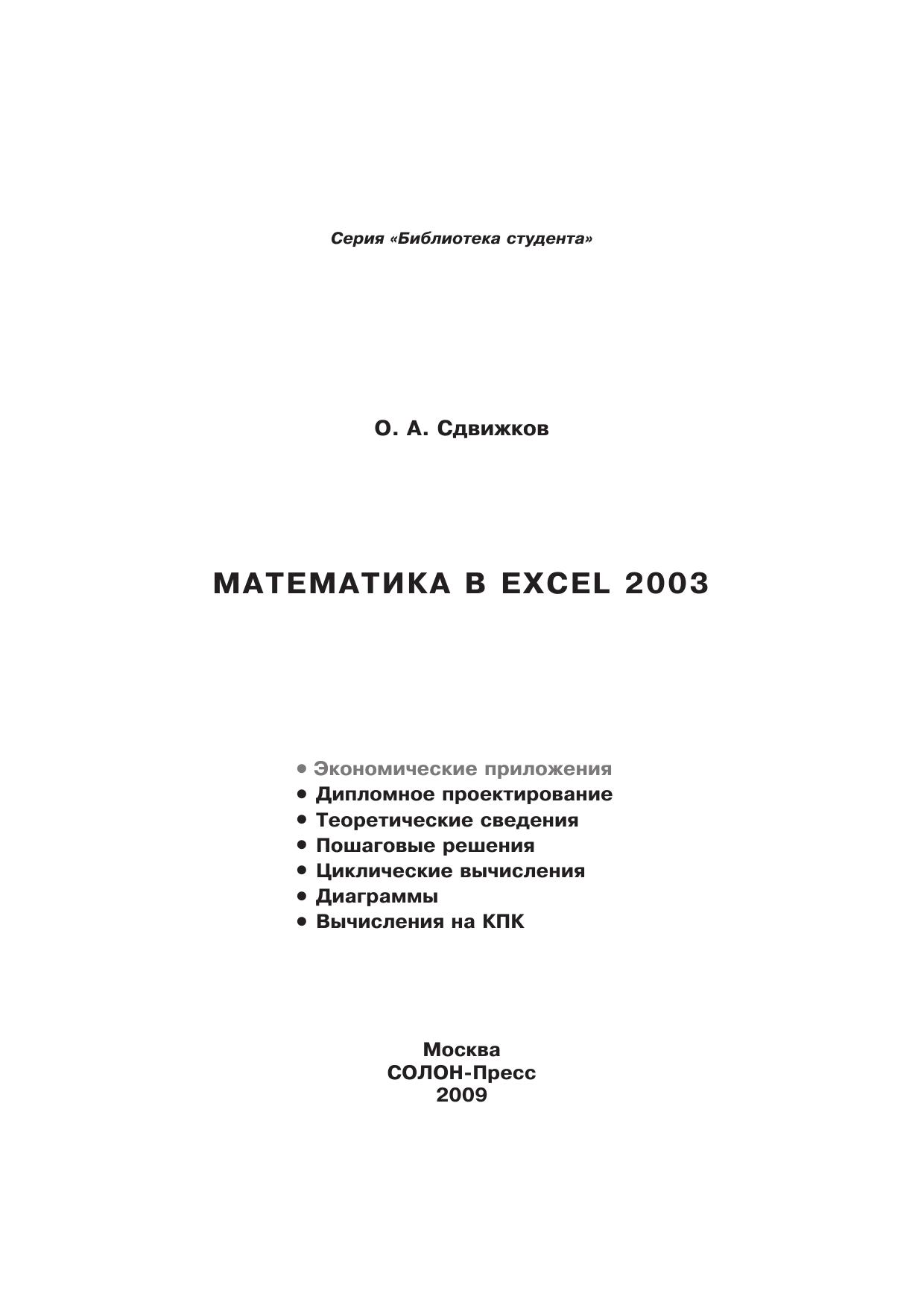 Книга посвящена применению популярного табличного процессора MS Excel 2003 в математических курсах вузов. Конспективно излагаются общие правила работы в среде Excel 2003 и приводятся подробные пошаговые решения типовых математических задач, начиная с задач элементарной математики и заканчивая математическими моделями в экономике. Систематически используются итерационные вычисления. Книга продолжает серию работ автора, имеющего богатый опыт преподавания высшей математики, кандидата физико-математических наук, доцента МГУС по информационным математическим технологиям. Предназначена для научно-технических работников, студентов и преподавателей высших учебных заведений.