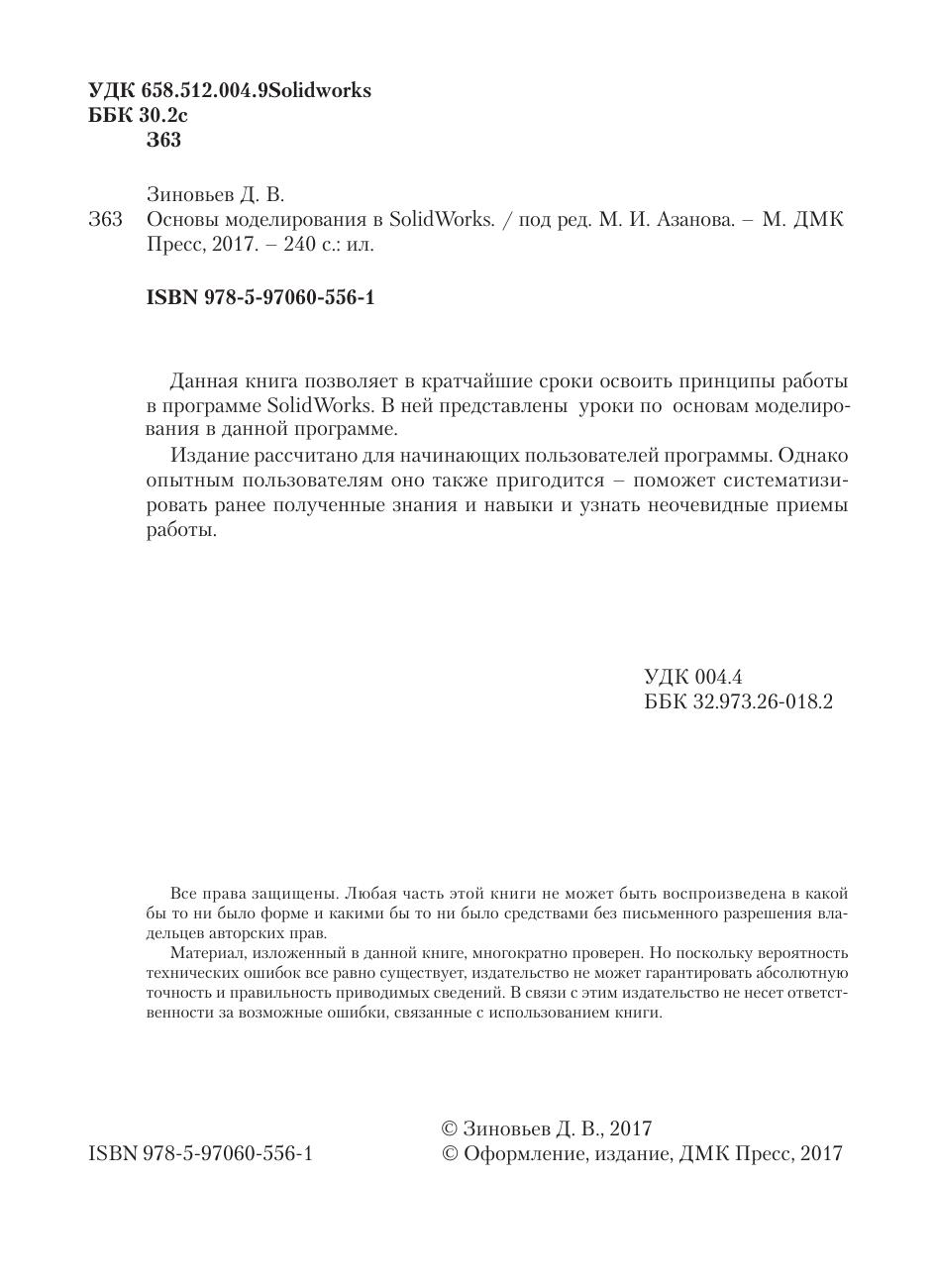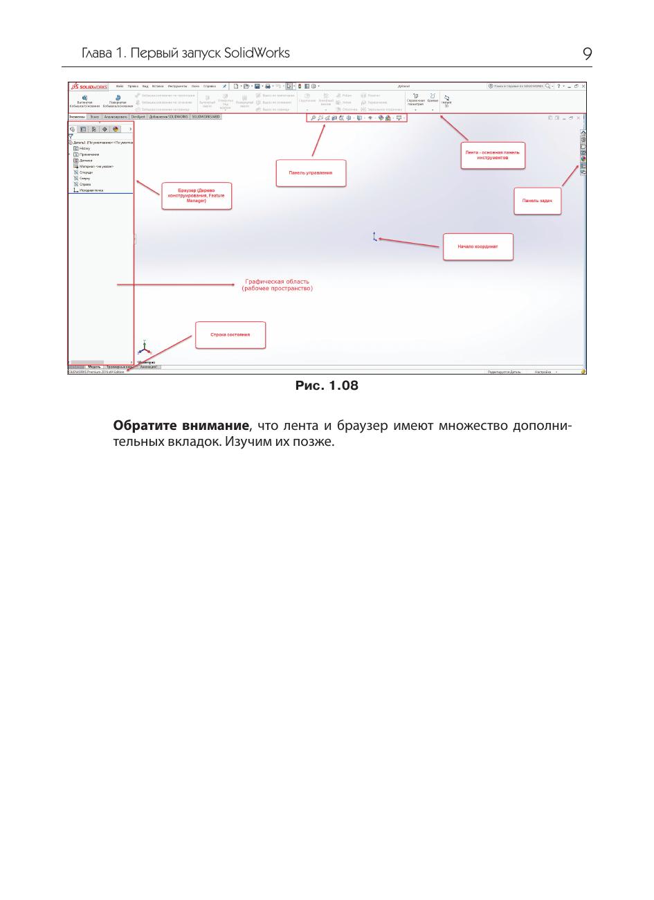 Данная книга позволяет в кратчайшие сроки освоить принципы работы в программе SolidWorks. В ней представлены уроки по основам моделирования в данной программе. Издание рассчитано для начинающих пользователей программы. Однако опытным пользователям оно также пригодится – поможет систематизировать ранее полученные знания и навыки и узнать неочевидные приемы работы.