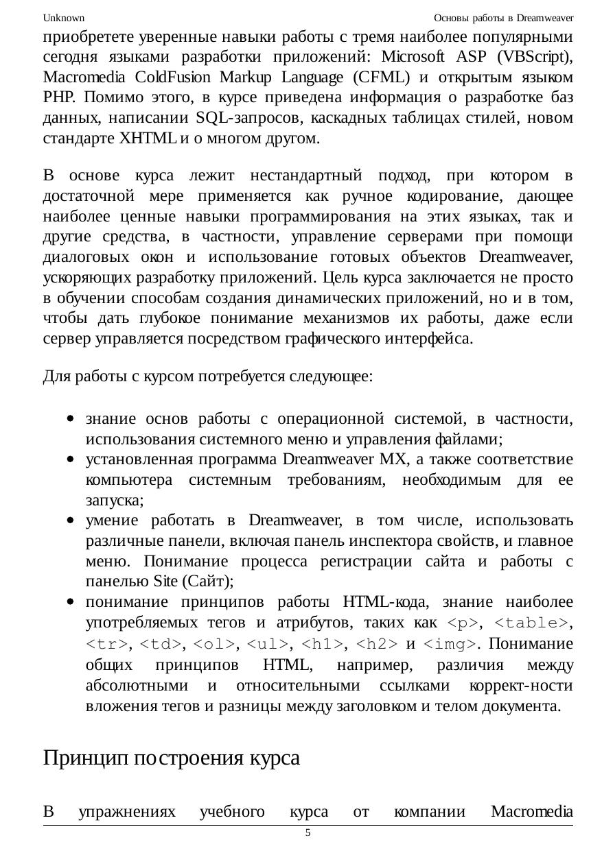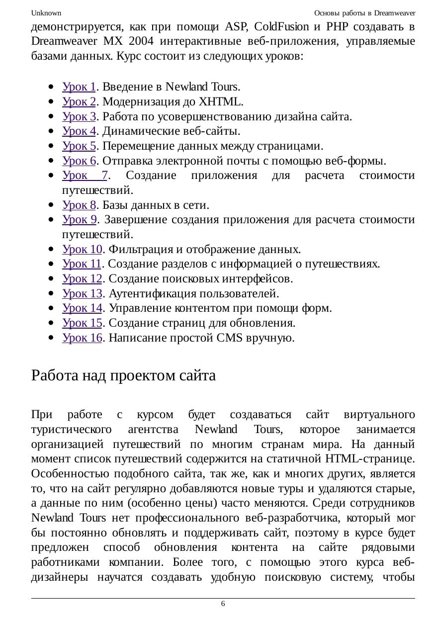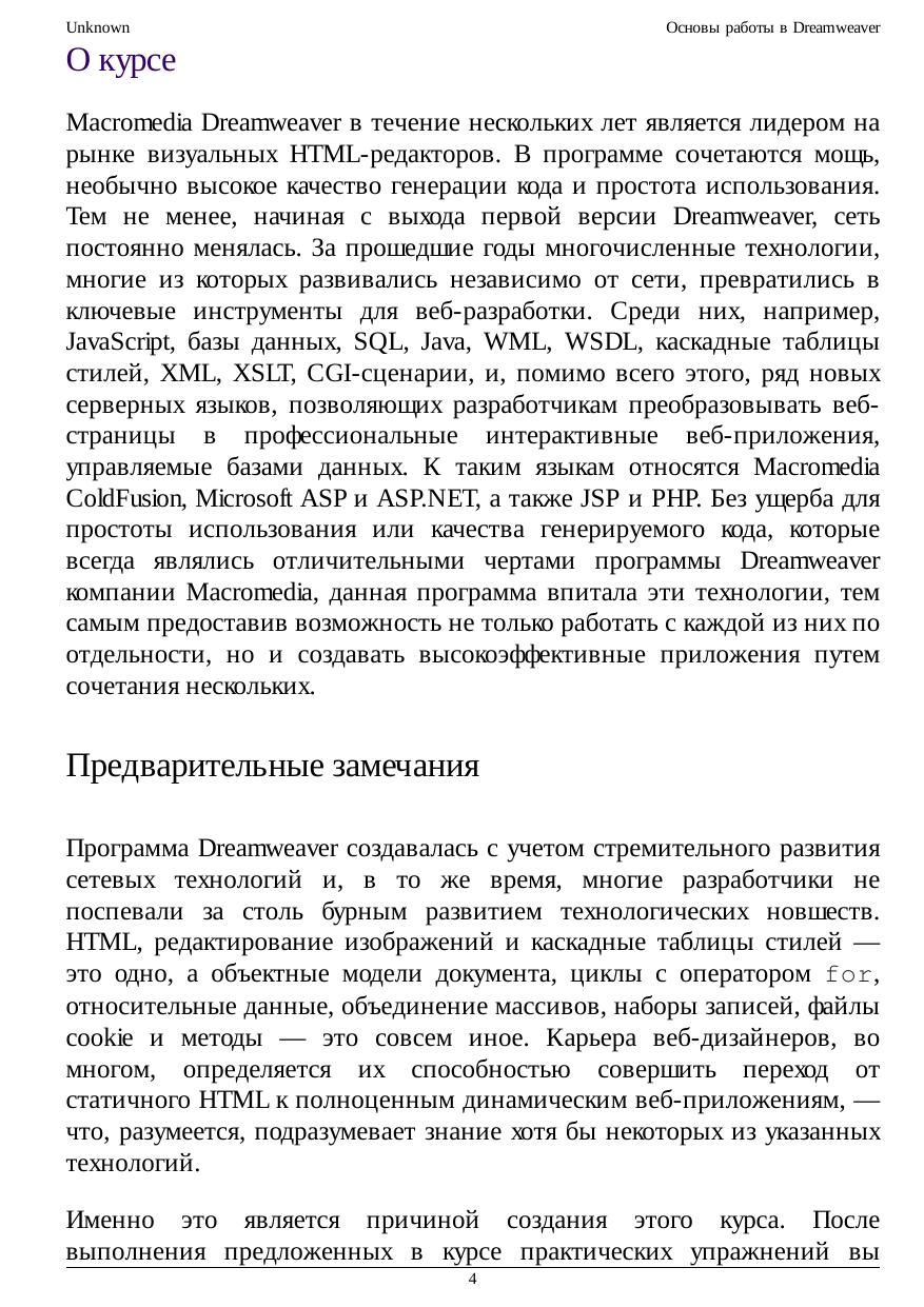 Основы работы в Dreamweaver