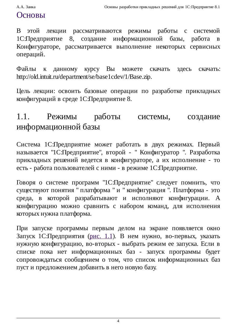Основы разработки прикладных решений для 1С:Предприятие 8.1