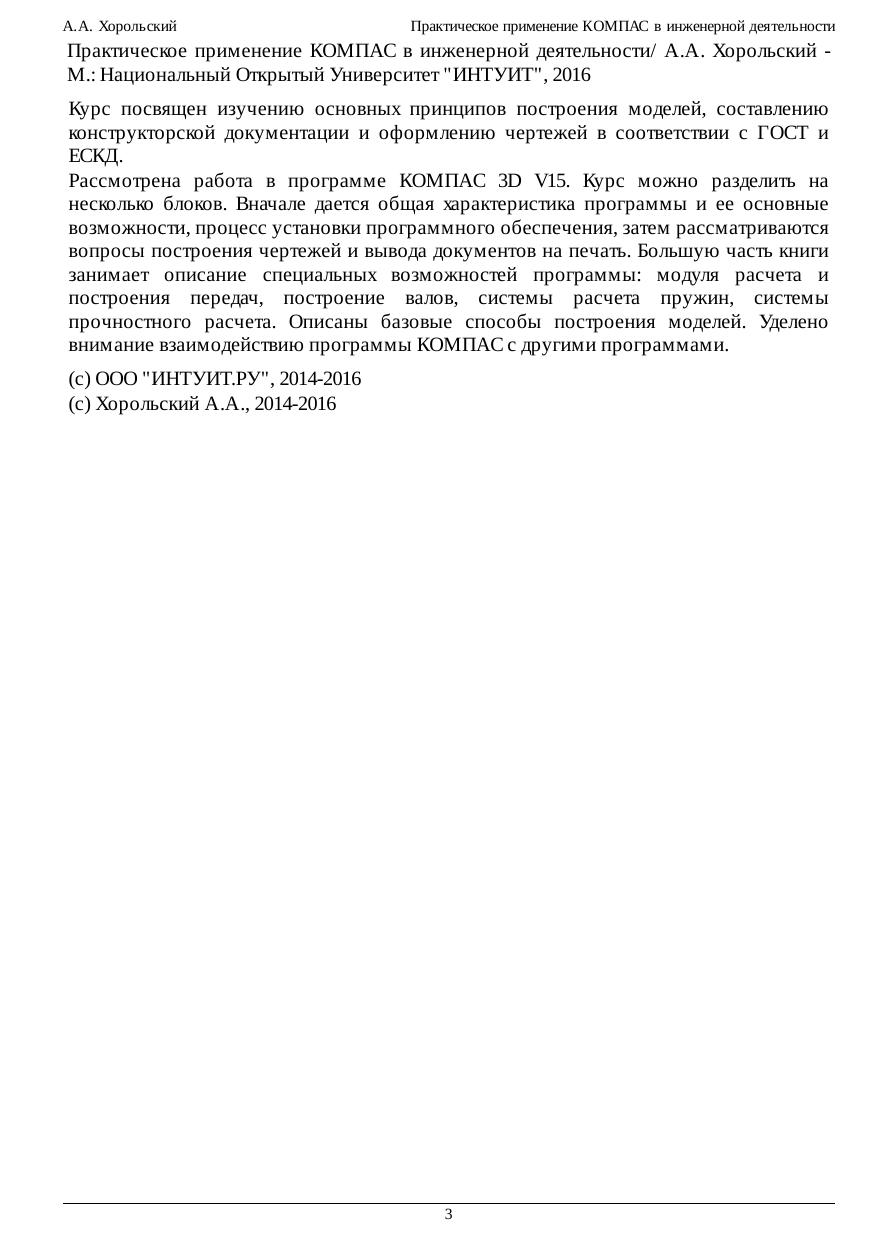 Курс посвящен изучению основных принципов построения моделей, составлению конструкторской документации и оформлению чертежей в соответствии с ГОСТ и ЕСКД. Рассмотрена работа в программе КОМПАС 3D V15. Курс можно разделить на