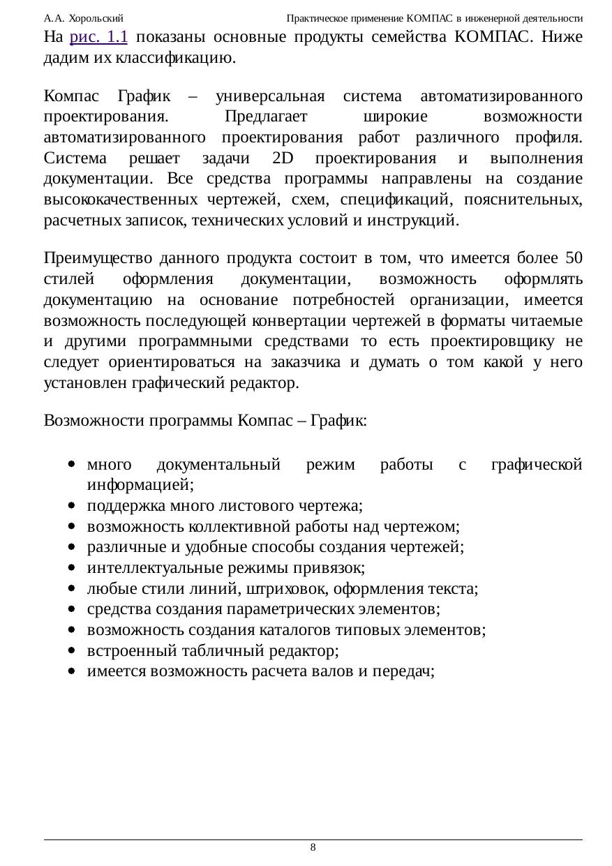несколько блоков. Вначале дается общая характеристика программы и ее основные возможности, процесс установки программного обеспечения, затем рассматриваются вопросы построения чертежей и вывода документов на печать. Большую часть книги занимает описание специальных возможностей программы: модуля расчета и построения передач, построение валов, системы расчета пружин, системы прочностного расчета. Описаны базовые способы построения моделей. Уделено внимание взаимодействию программы КОМПАС с другими программами.