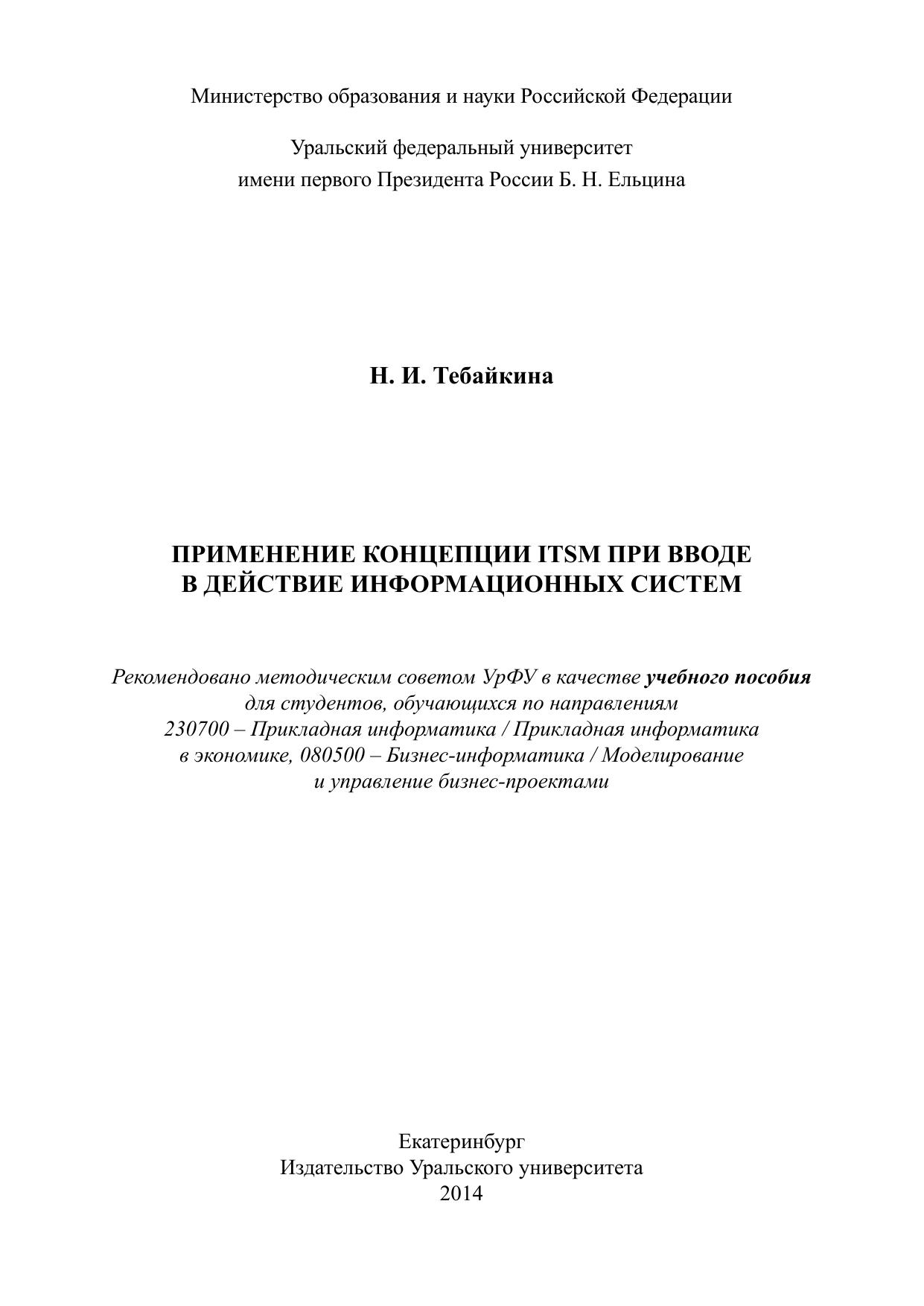 Применение концепции ITSM при вводе в действие информационных систем: учебное пособие
