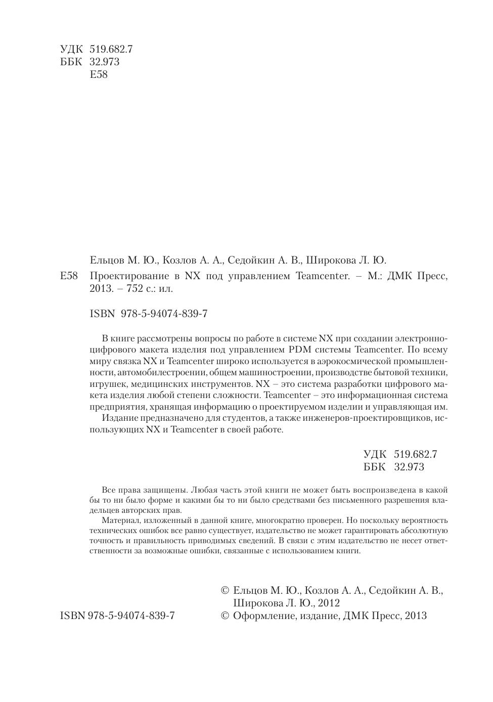 В книге рассмотрены вопросы по работе в системе NX при создании электронно-цифрового макета изделия под управлением PDM системы Teamcenter. По всему миру связка NX и Teamcenter широко используется в аэрокосмической промышленности, автомобилестроении, общем машиностроении, производстве бытовой техники, игрушек, медицинских инструментов. NX – это система разработки цифрового макета изделия любой степени сложности. Teamcenter – это информационная система предприятия, хранящая информацию о проектируемом изделии и управляющая им. Издание предназначено для студентов, а также инженеров-проектировщиков, использующих NX и Teamcenter в своей работе.