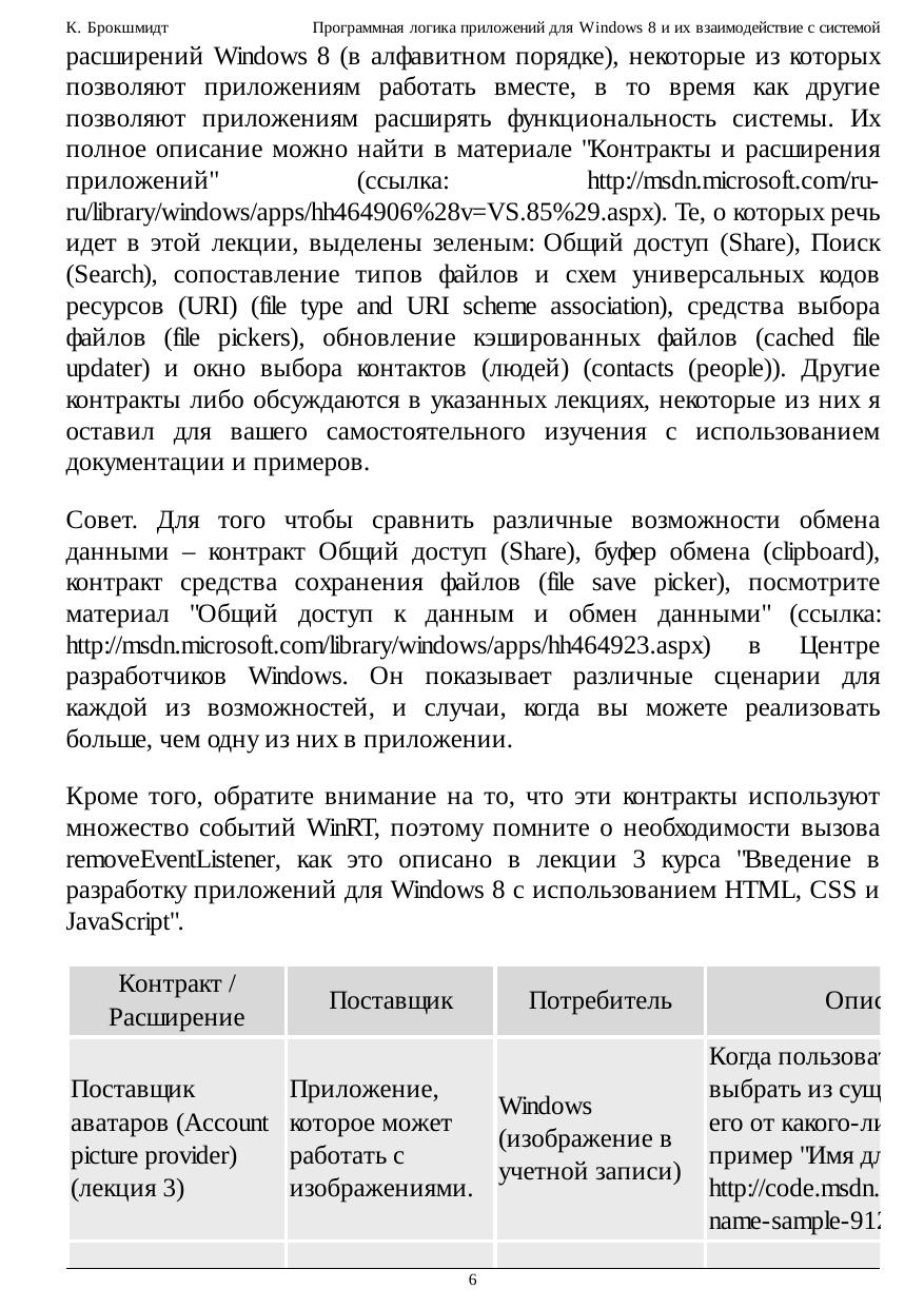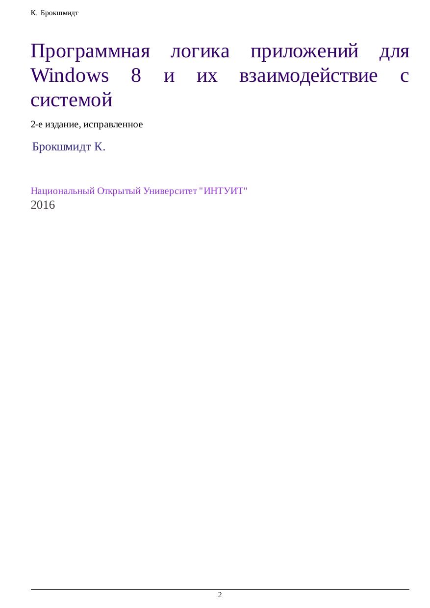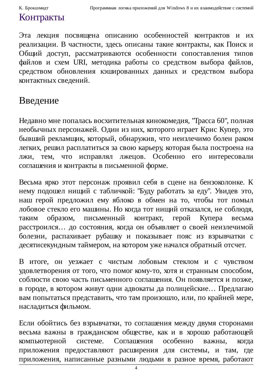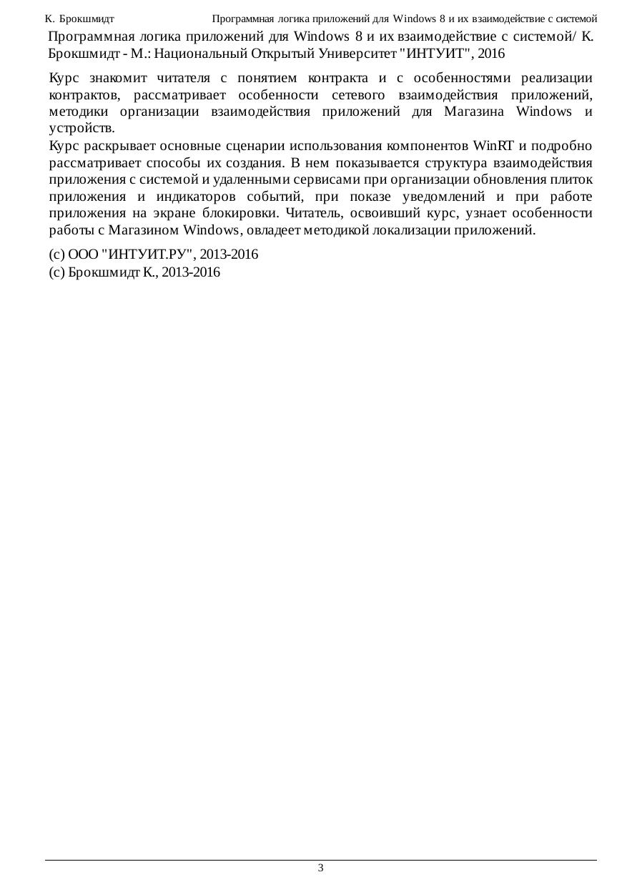 Курс знакомит читателя с понятием контракта и с особенностями реализации контрактов, рассматривает особенности сетевого взаимодействия приложений, методики организации взаимодействия приложений для Магазина Windows и устройств.