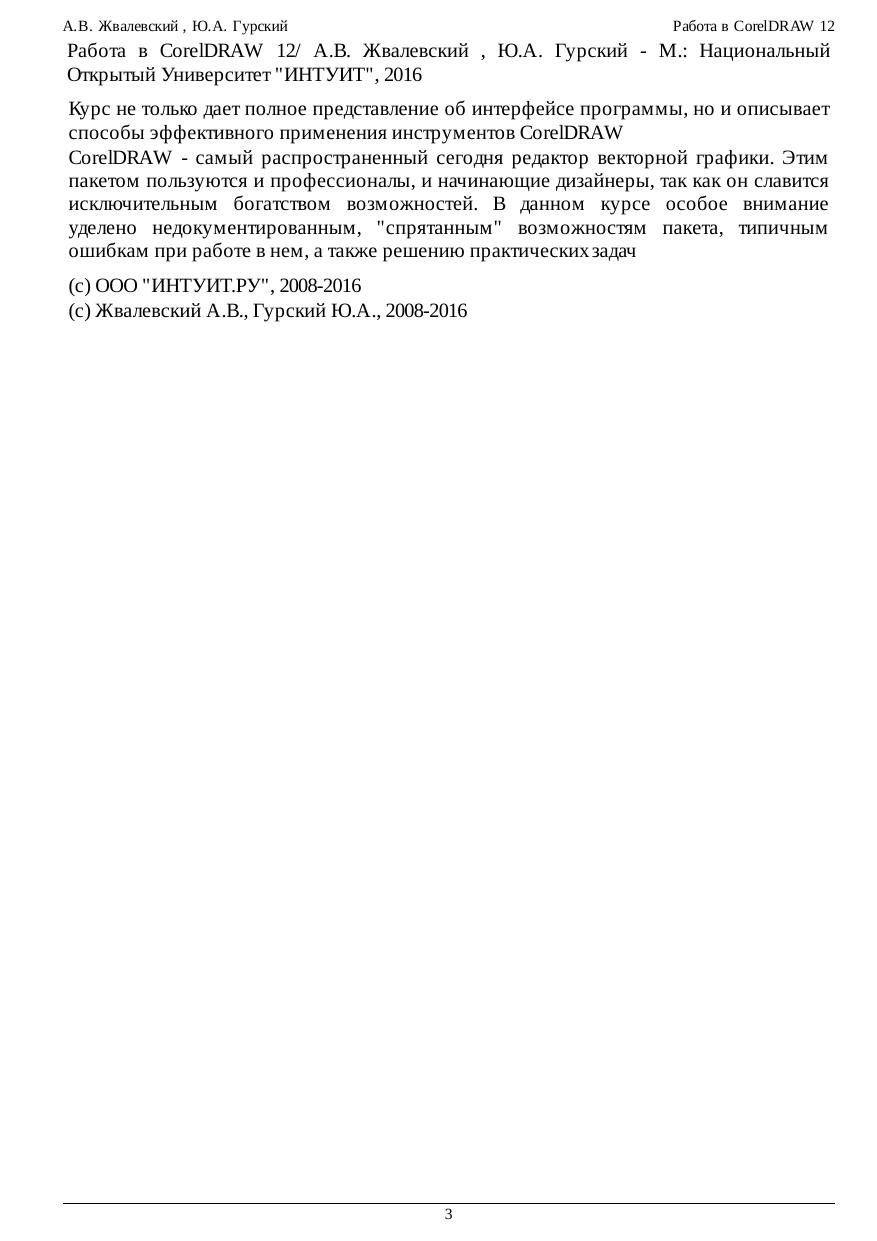 Курс не только дает полное представление об интерфейсе программы, но и описывает способы эффективного применения инструментов CorelDRAW CorelDRAW - самый распространенный сегодня редактор векторной графики. Этим пакетом пользуются и профессионалы, и начинающие дизайнеры, так как он славится исключительным богатством возможностей. В данном курсе особое внимание уделено недокументированным, "спрятанным" возможностям пакета, типичным ошибкам при работе в нем, а также решению практических задач