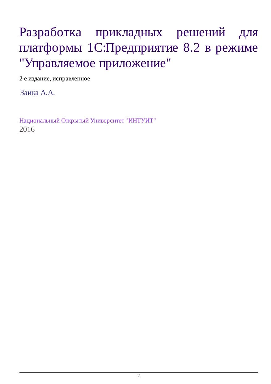 Разработка прикладных решений для платформы 1С:Предприятие 8.2 в режиме "Управляемое приложение"