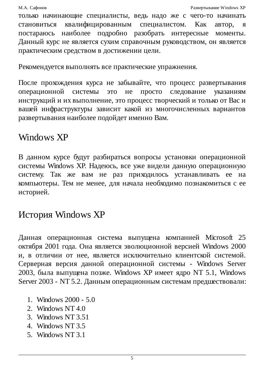 В данном курсе рассматриваются вопросы развертывания операционной системы Windows XP. Уделяется внимание проблемам установки драйверов и обновлений. Описываются принципы автоматической установки приложений. Данный курс посвящен проблеме развертывания операционной системы в средних и крупных организациях. Основное внимание уделяется процессу автоматизации установки операционной системы, настройки и установки приложений, интеграции драйверов и обновлений операционной системы в дистрибутив продукта. Разбираются вопросы создания сервера удаленной установки, который позволяет автоматизировать процессы создания рабочего места пользователей. Рассматриваются программные