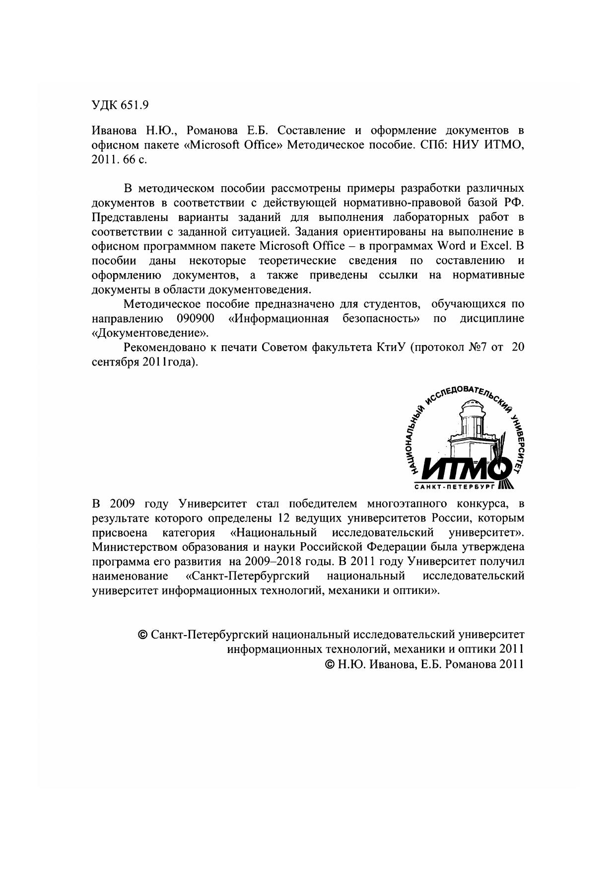 В методическом пособии рассмотрены примеры разработки различных документов в соответствии с действующей нормативно-правовой базой РФ. Представлены варианты заданий для выполнения лабораторных работ в соответствии с заданной ситуацией. Задания ориентированы на выполнение в офисном программном пакете Microsoft Office – в программах Word и Excel. В пособии даны некоторые теоретические сведения по составлению и оформлению документов, а также приведены ссылки на нормативные документы в области документоведения.