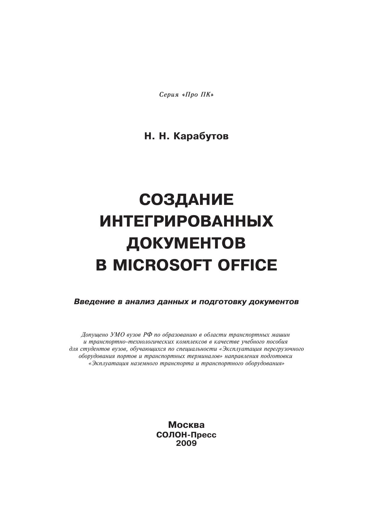 Создание интегрированных документов в Microsoft office. Введение в анализ данных и подготовку документов
