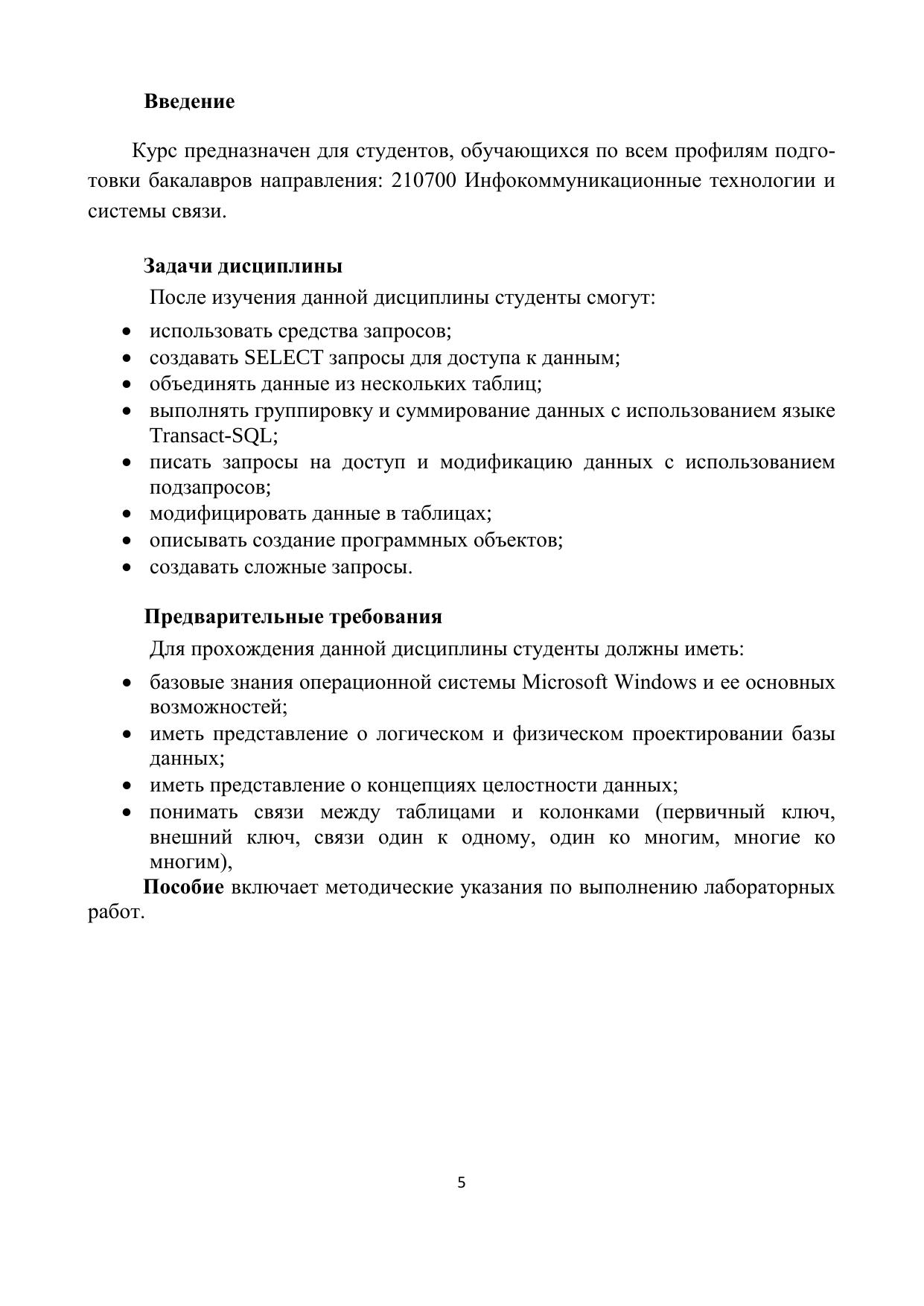 В пособии излагаются методические рекомендации к выполнению лабораторных работ по дисциплине “Создание клиент-серверных приложений”. Предназначено для студентов, обучающихся по всем профилям подготовки бакалавров направления: 210700 Инфокоммуникационные технологии и системы связи.