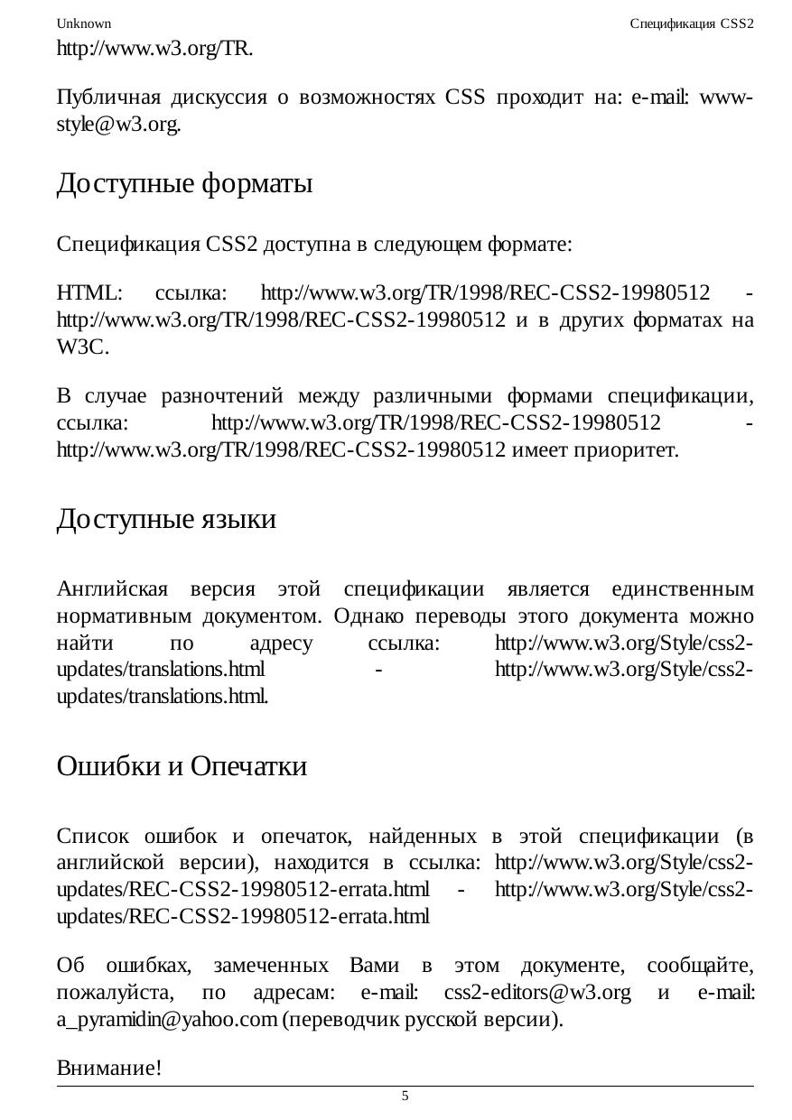 Курс построен по спецификации, которая определяет язык каскадных таблиц стилей CSS2. Данная спецификация поддерживает позиционирование содержимого, загружаемые шрифты, отображение таблиц, возможности интернационализации, автоматические счётчики и нумерацию и некоторые свойства, относящиеся к пользовательскому интерфейсу.