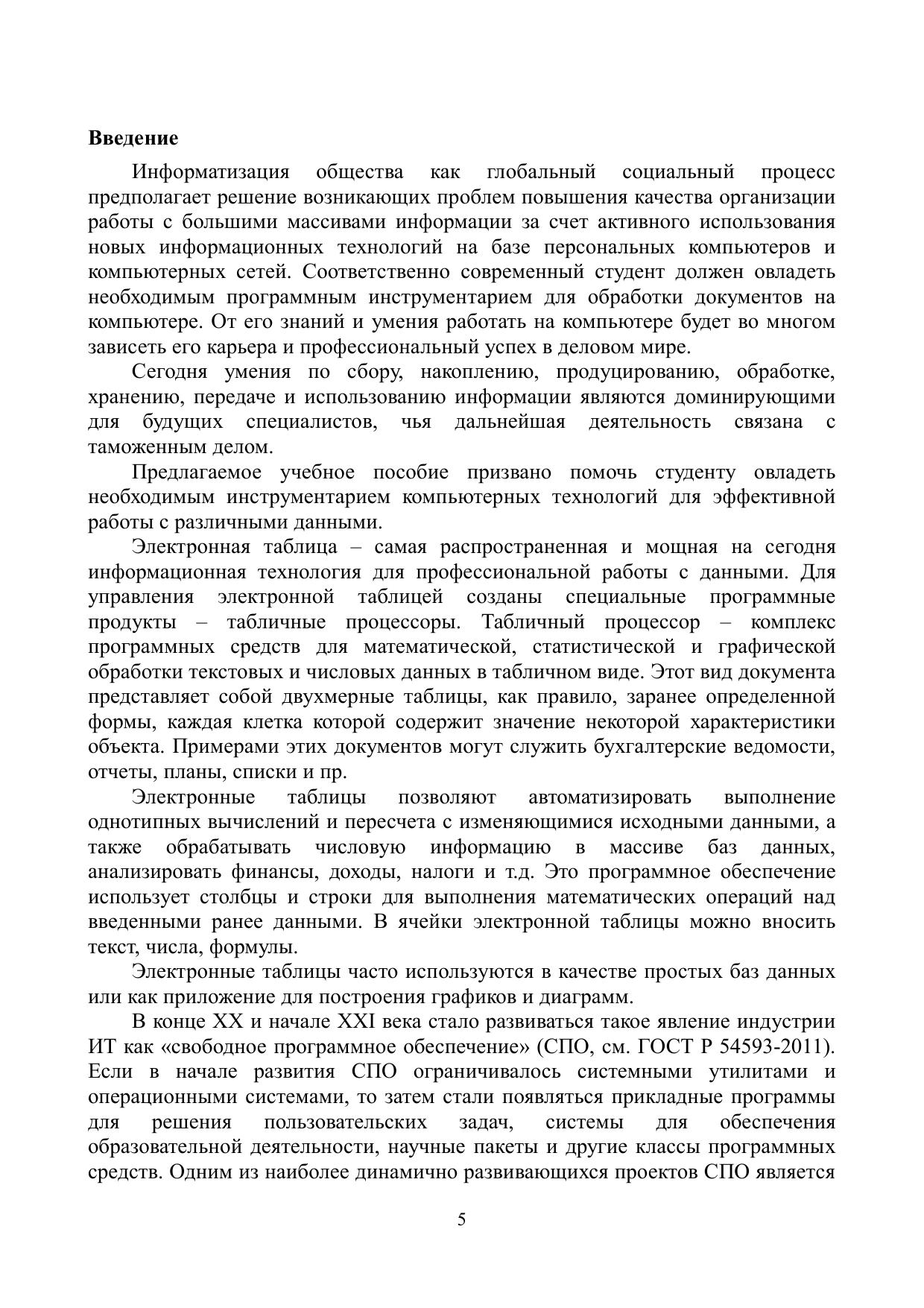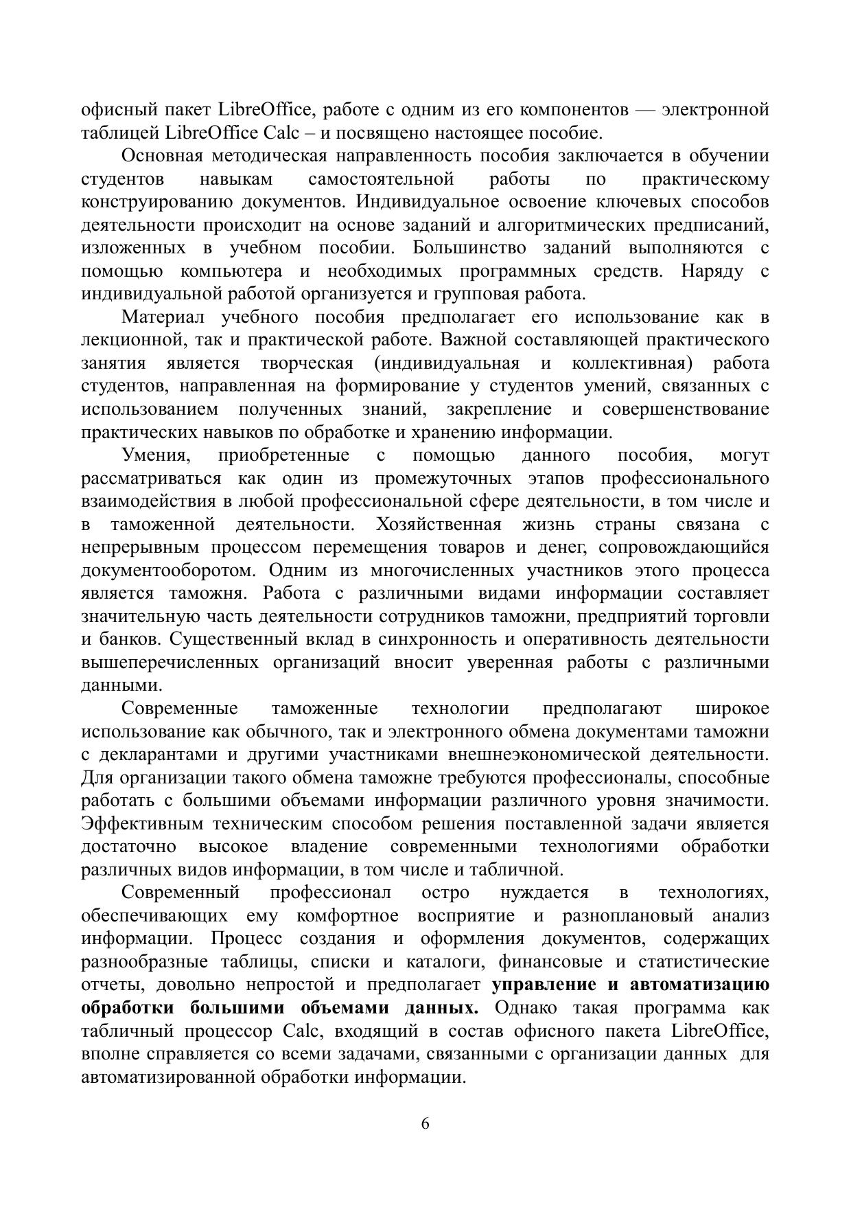 Учебное пособие разработано в соответствие с программой дисциплины «Информатика» и предназначено для студентов, обучающихся по специальностям направления подготовки 38.05.02 (таможенное дело). Учебное пособие направлено на изучение возможностей табличного процессора LibreOffice и получение навыков профессиональной работы с электронными таблицами. В процессе работы с пособием студенты научатся производить расчеты, строить диаграммы, создавать отчеты, фильтровать данные, решать экономические задачи. Даются методические материалы по работе с табличным редактором LibreOffice Calc, варианты заданий для выполнения лабораторных работ.