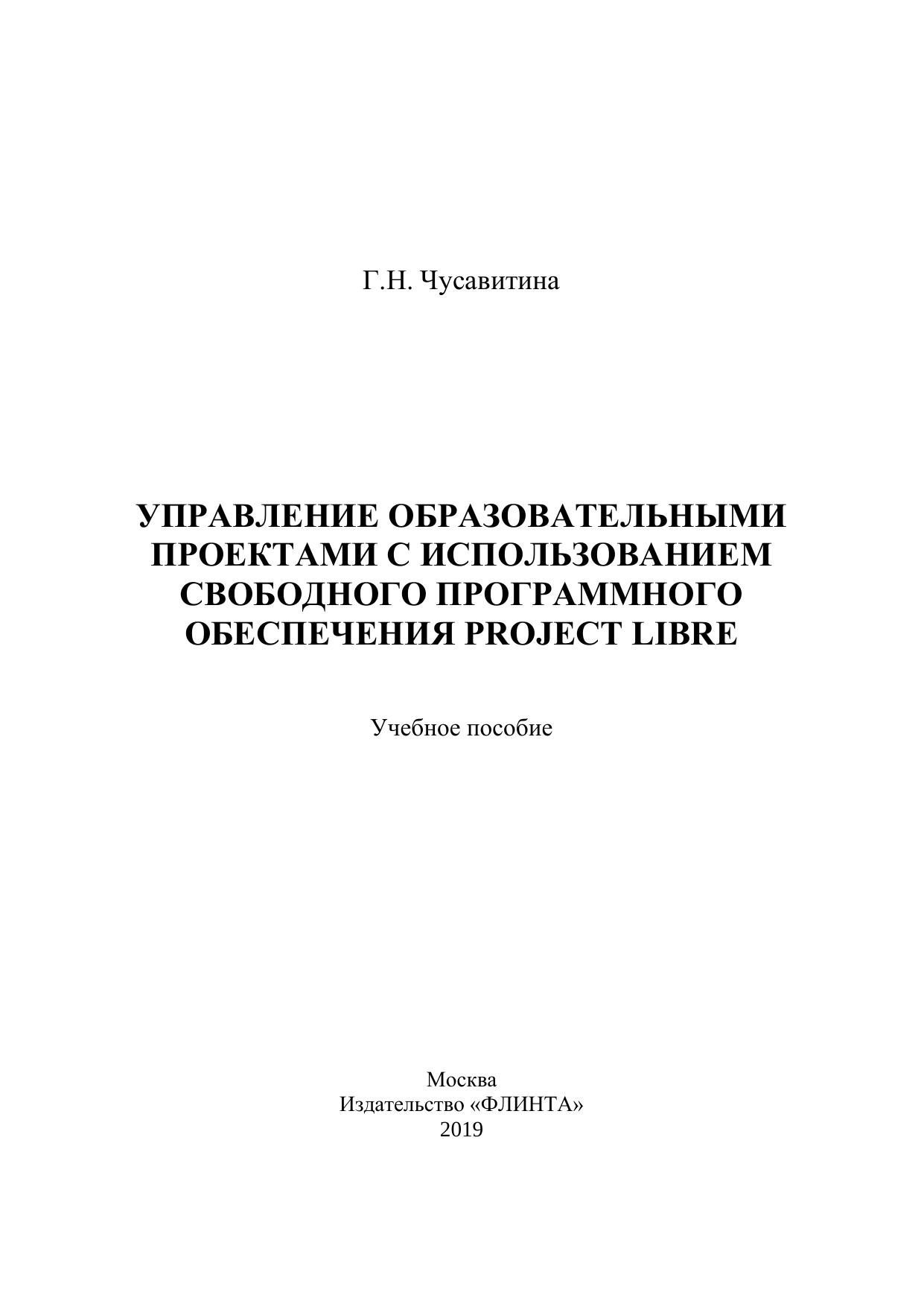 Пособие включает практические задания по управлению образовательным проектом полного жизненного цикла. Задания представлены в соответствии со стадиями образовательного проекта: задания на предпроектной стадии, задания на этапе инициации проекта, задания на этапе планирования проекта, на завершающей стадии проекта. Выполнение заданий осуществляется с использованием бесплатного кроссплатформенного программного пакета ProjectLibre, созданного для управления проектами в качестве альтернативы платной программе Microsoft Project.
