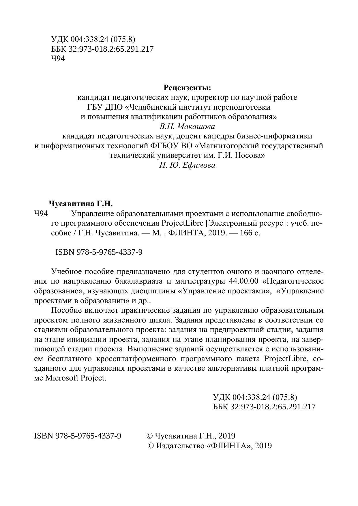 Учебное пособие предназначено для студентов очного и заочного отделения по направлению бакалавриата и магистратуры 44.00.00 «Педагогическое образование», изучающих дисциплины «Управление проектами», «Управление проектами в образовании» и др.