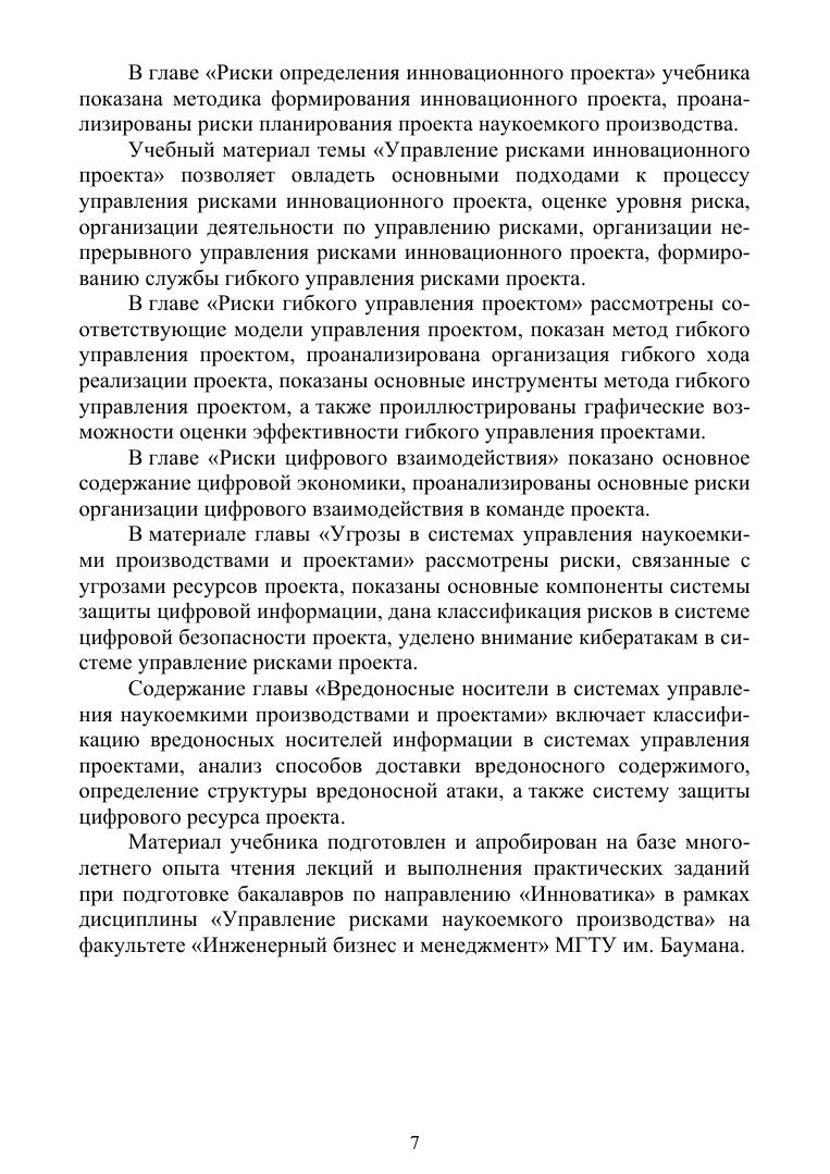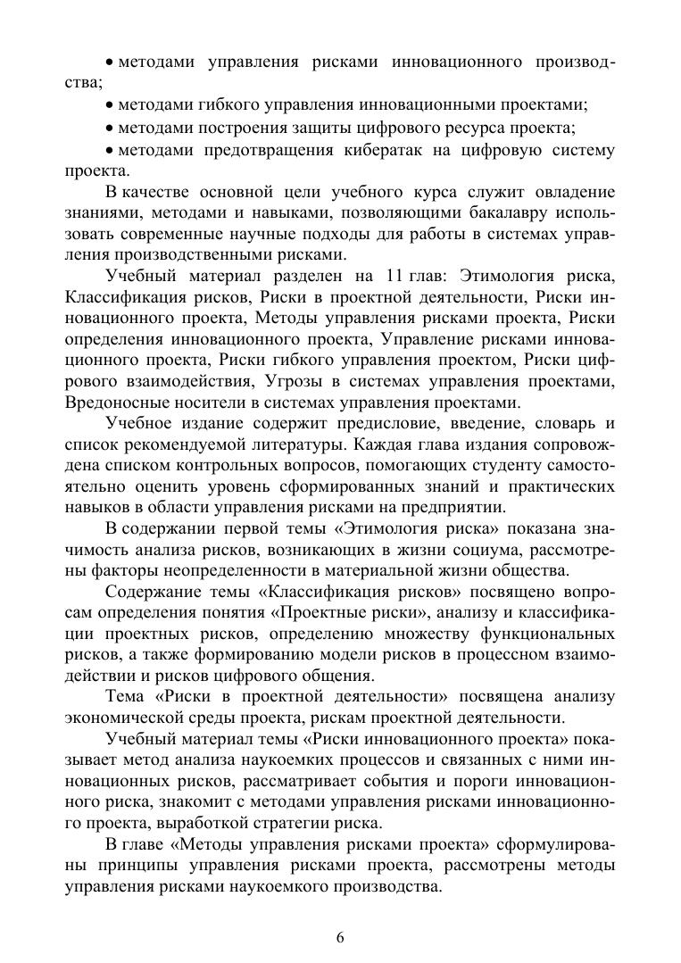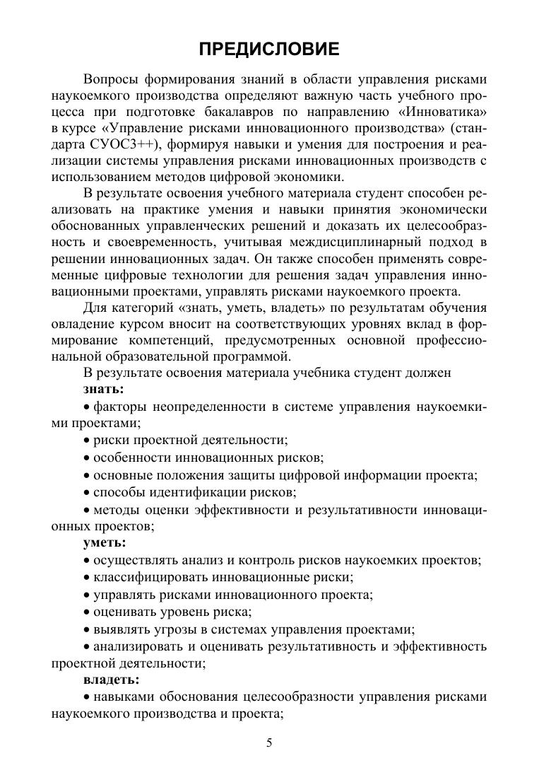 Учебник содержит учебный и методический материал, необходимый для изучения учебного курса «Управление рисками наукоемкого производства» при подготовке студентов по направлению «Инноватика». Позволяет овладеть основными научными концепциями в области определения и уменьшения рисков организации и управления инновационными производствами и проектами, получить навыки использования цифрового подхода к выявлению и предотвращению рисков. Книга будет полезна при формировании знаний в области цифровой экономики. Учебник рассчитан на студентов вузов, изучающих инноватику, промышленную логистику, цифровую экономику и др.
