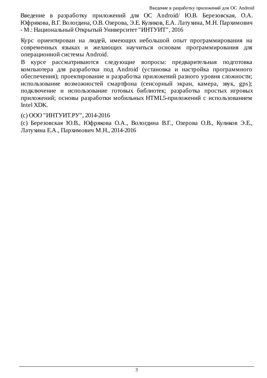 Курс ориентирован на людей, имеющих небольшой опыт программирования на современных языках и желающих научиться основам программирования для операционной системы Android.