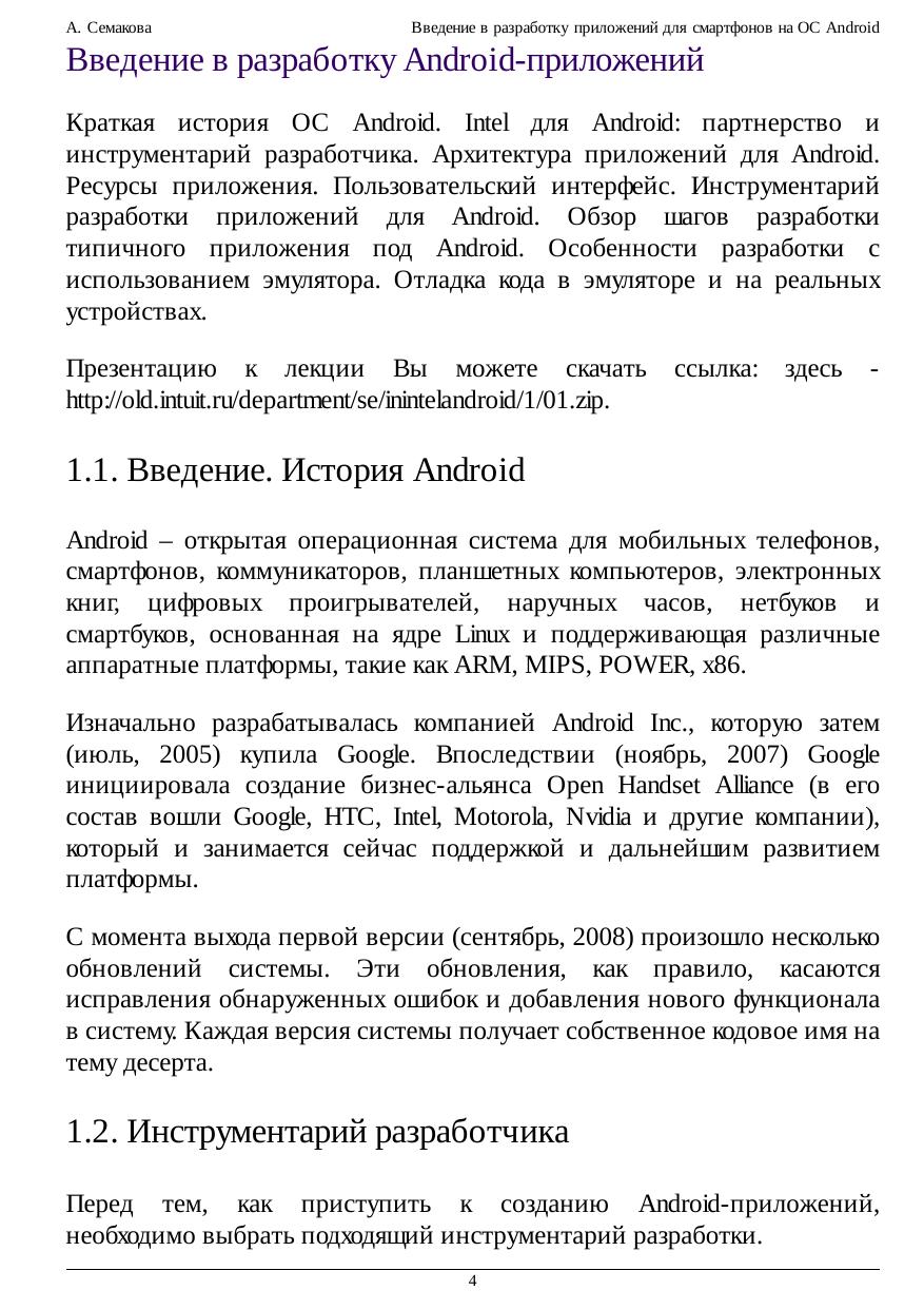 Введение в разработку приложений для смартфонов на ОС Android