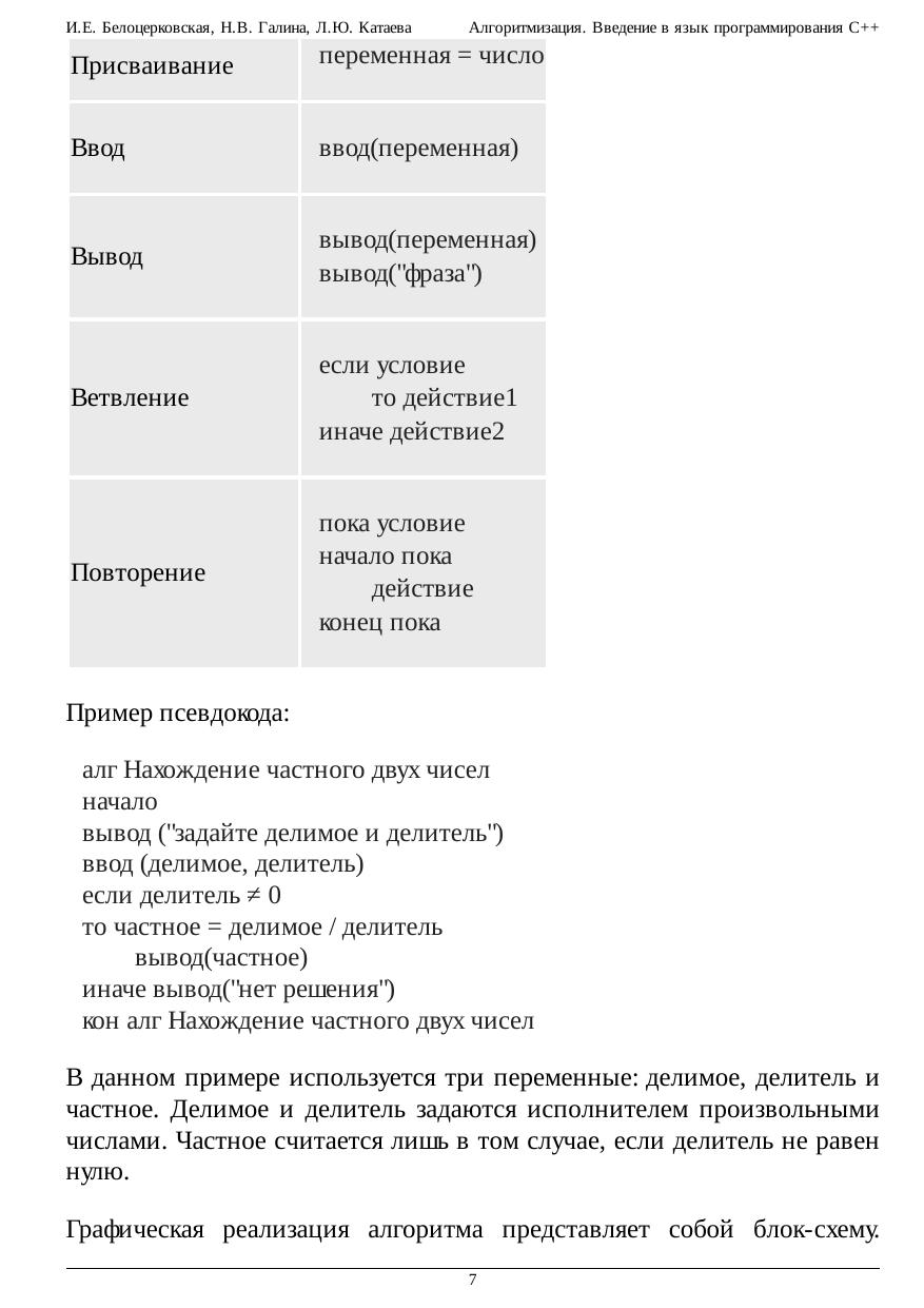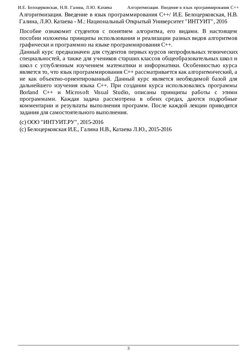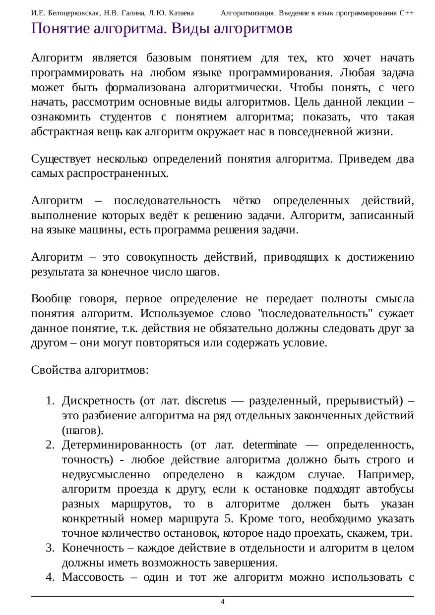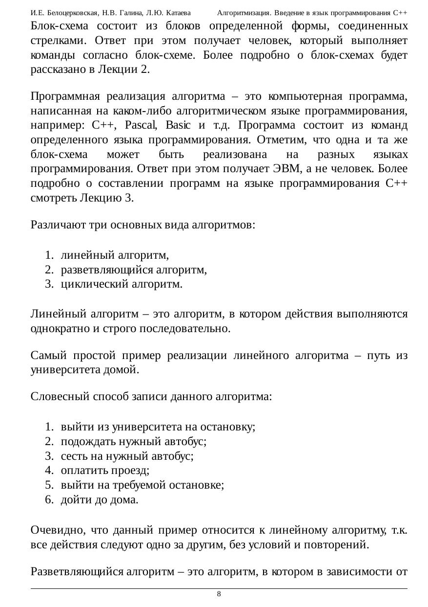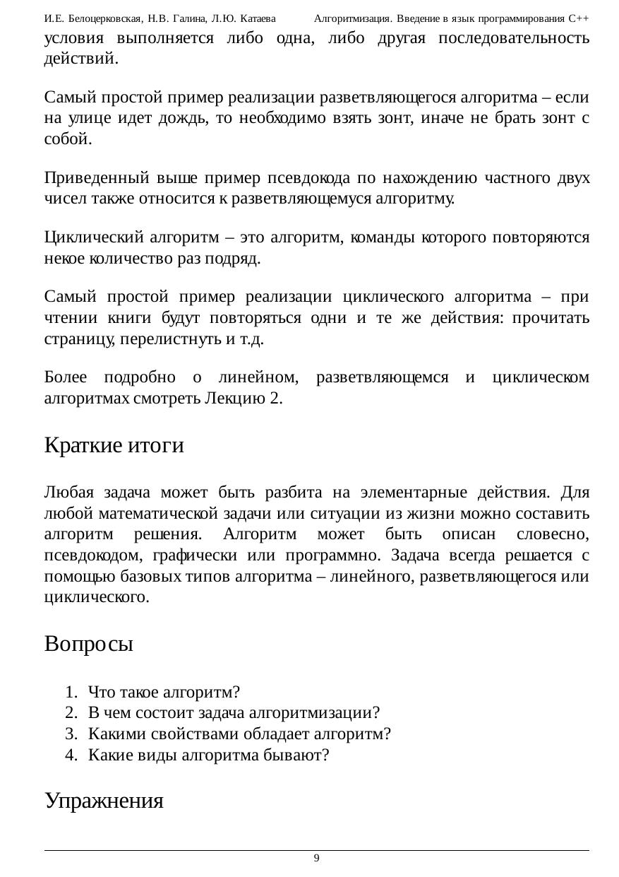 Пособие ознакомит студентов с понятием алгоритма, его видами. В настоящем пособии изложены принципы использования и реализации разных видов алгоритмов графически и программно на языке программирования С++.