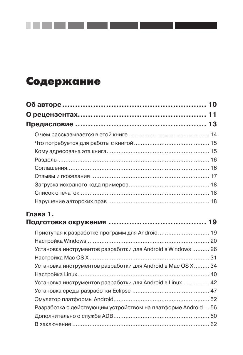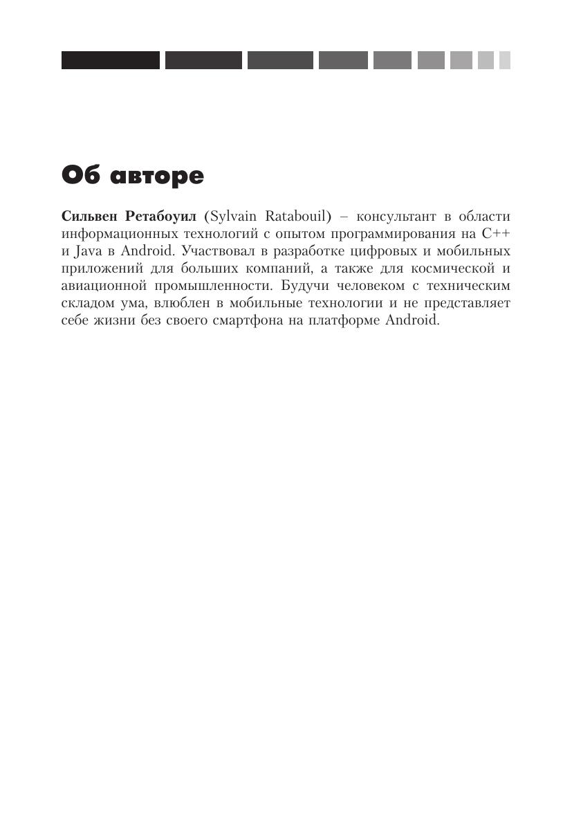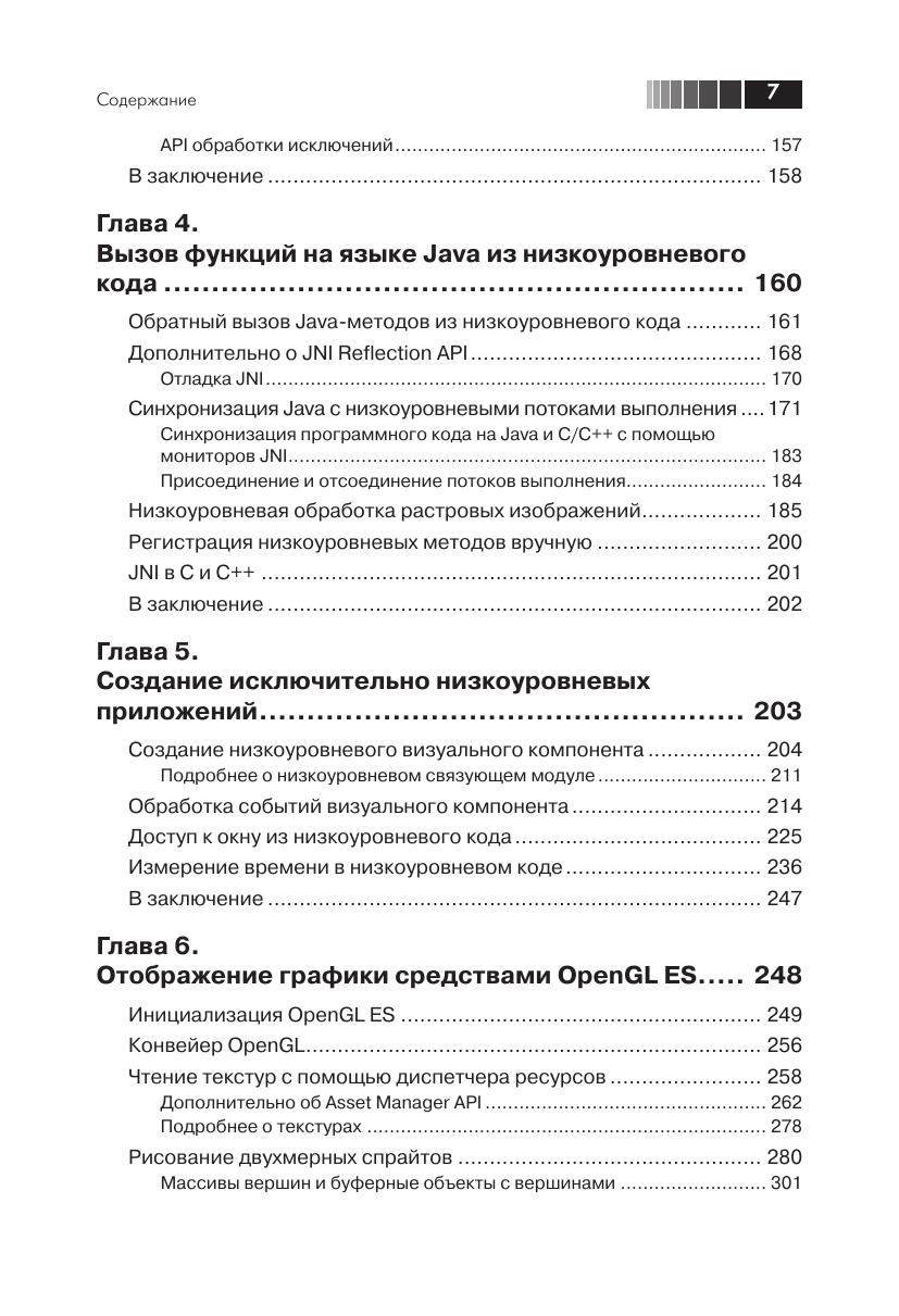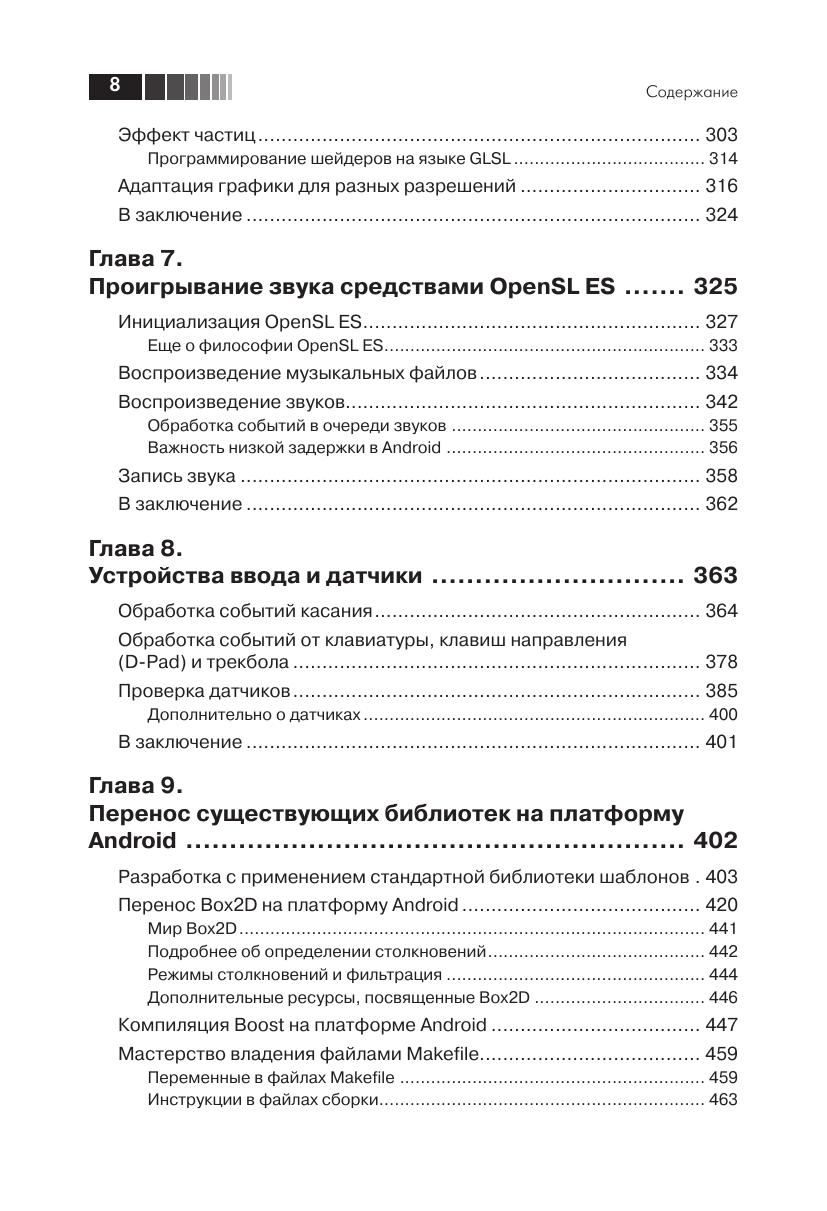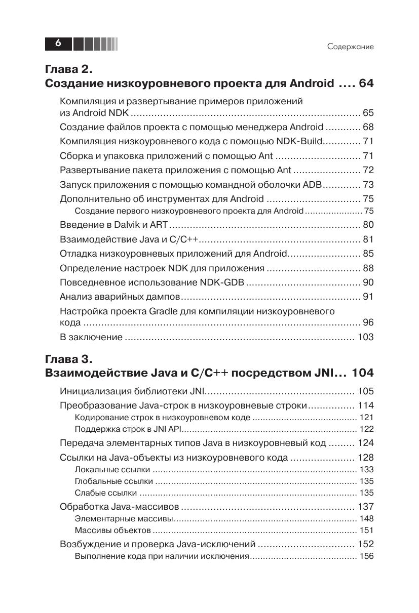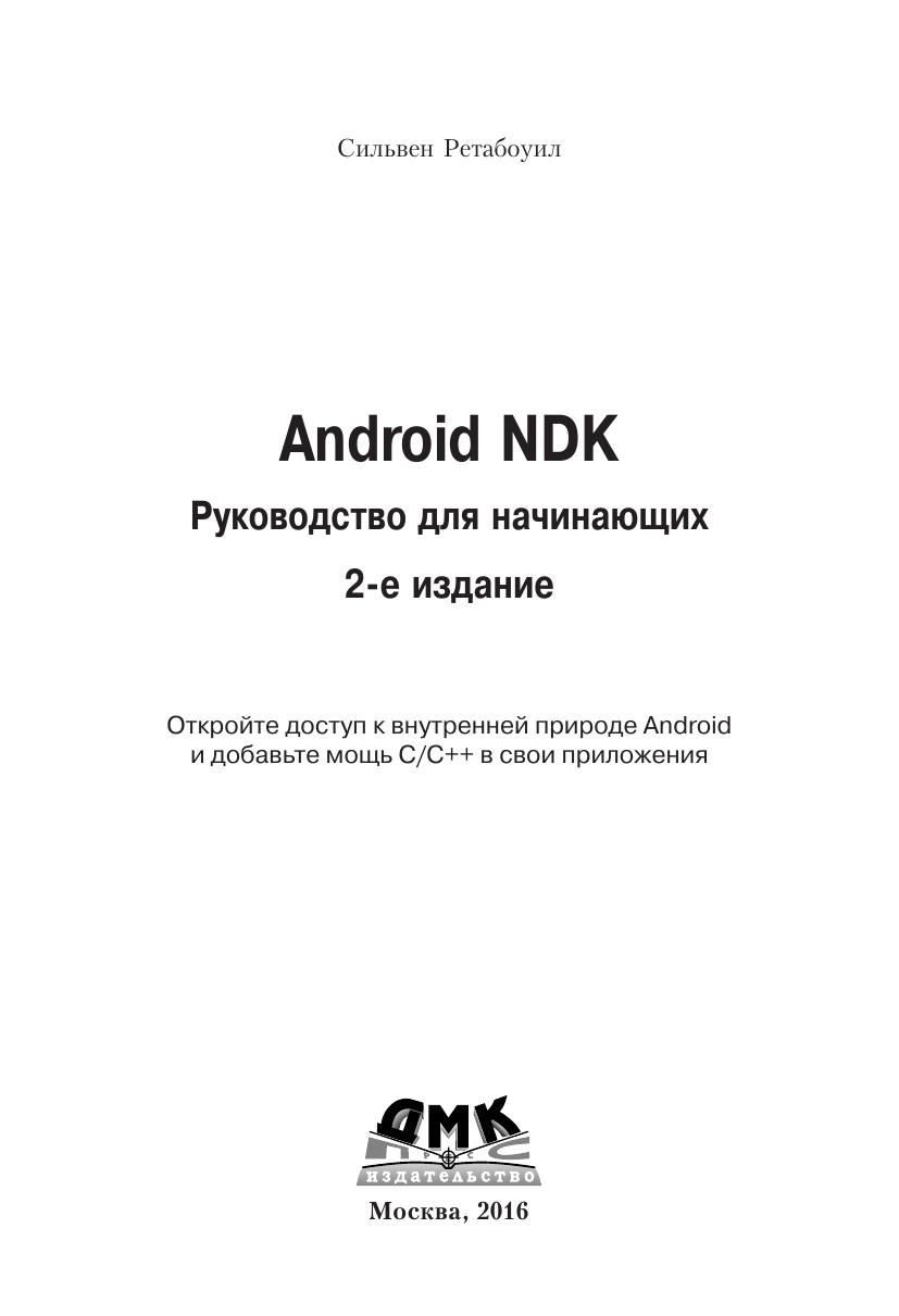 В книге показано, как создавать мобильные приложения для платформы Android на языке C/C++ с использованием пакета библиотек Android Native Development Kit (NDK) и объединять их с программным кодом на языке Java. Вы узнаете как создать первое низкоуровневое приложение для Android, как взаимодействовать с программным кодом на Java посредством механизма Java Native Interfaces, как соединить в своем приложении вывод графики и звука, обработку устройств ввода и датчиков, как отображать графику с помощью библиотеки OpenGL ES и др. Издание предназначено для разработчиков мобильных приложений, как начинающих так и более опытных, уже знакомых с программированием под Android с использованием Android SDK.