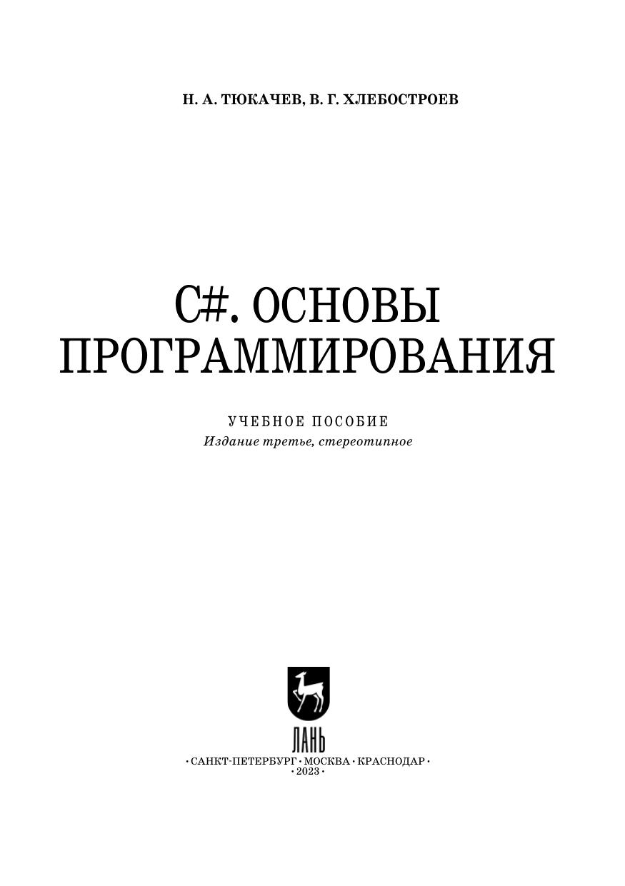 В книге изложены основы программирования на языке C# в среде .Net Framework, описаны операции и операторы языка, а также система встроенных типов данных. Значительное внимание уделено описанию организации консольного ввода-вывода, преобразованию значений при вводе и их форматированию при выводе. Текст содержит большое количество примеров программного кода, способствующих усвоению материала. Соответствует современным требованиям Федерального государственного образовательного стандарта среднего профессионального образования и профессиональным квалификационным требованиям. Книга предназначена для студентов для студентов, обучающихся по направлениям группы Информатика и вычислительная техника, Информационная безопасность, Электроника, радиотехника и системы связи среднего профессионального образования, а также учащихся старших классов и лиц, самостоятельно изучающих языки программирования. К книге прилагаются дополнительные материалы, доступные в электронной библиотечной системе «Лань» по ссылке или QR-коду, указанным ниже.
