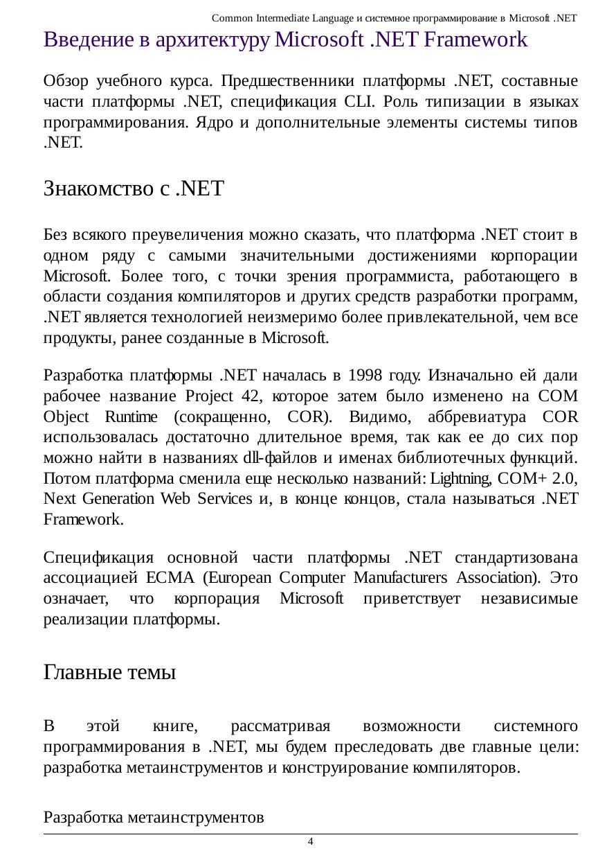 платформы .NET. Адресовано всем изучающим вопросы создания метаинструментария и разработки компиляторов для различных операционных