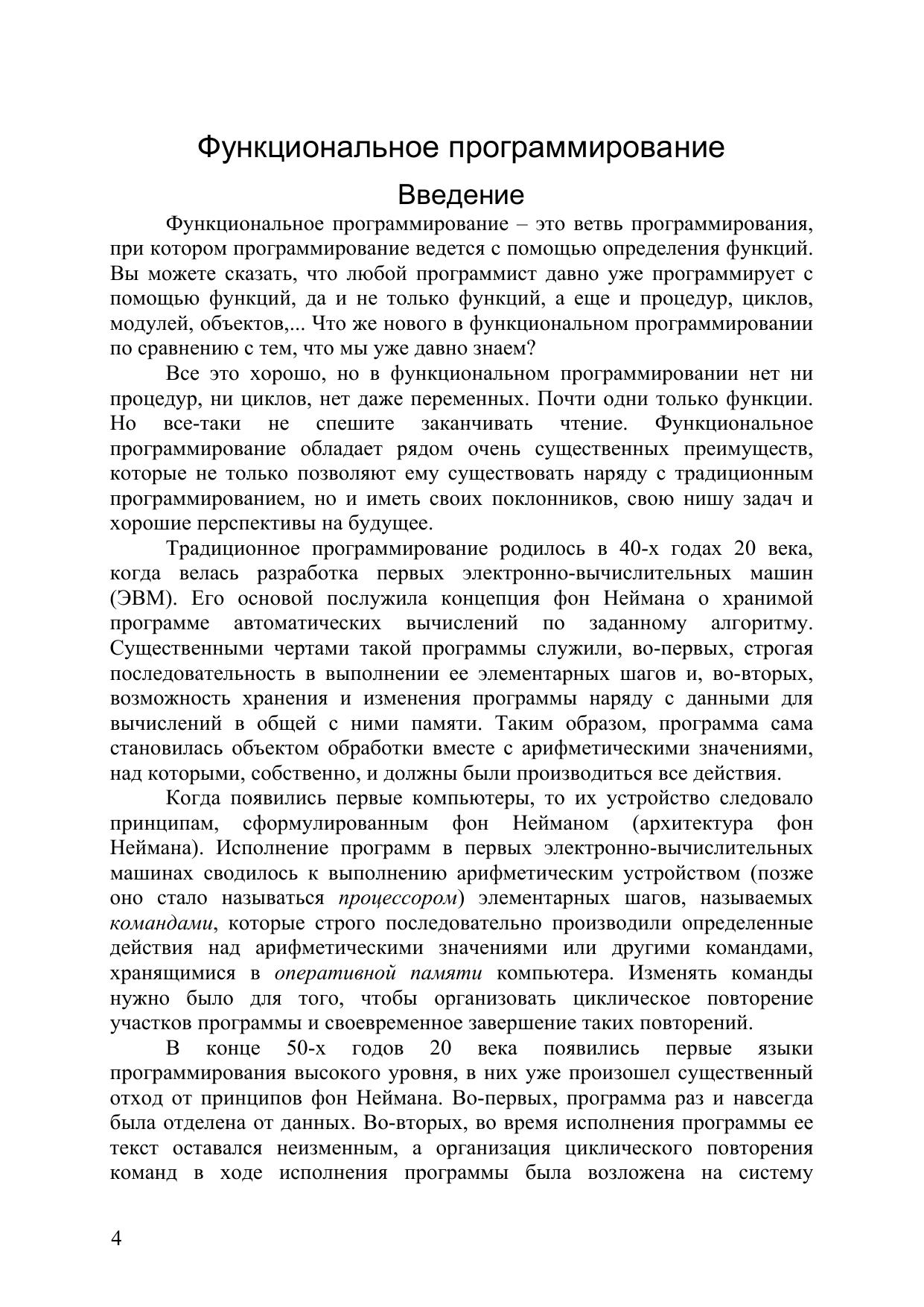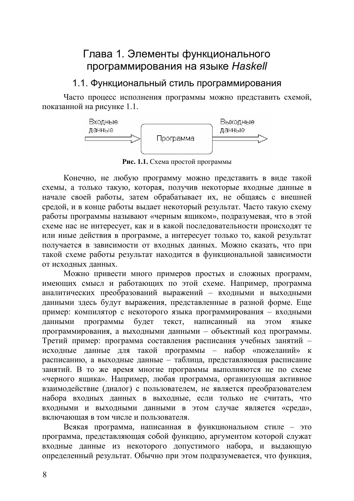 Рекомендуется для обучения по специальностям 010500 – Прикладная математика и информатика, 01050004 – Технология программирования. Учебно-методическое пособие содержит обширный теоретический и практический материал по курсу «Функциональное программирование». Изложение ведется с использованием одного из самых известных и распространенных в настоящее время языков функционального программирования – языка Haskell. Даны многочисленные примеры программ, подробно обсуждаются методы и приемы функционального программирования.