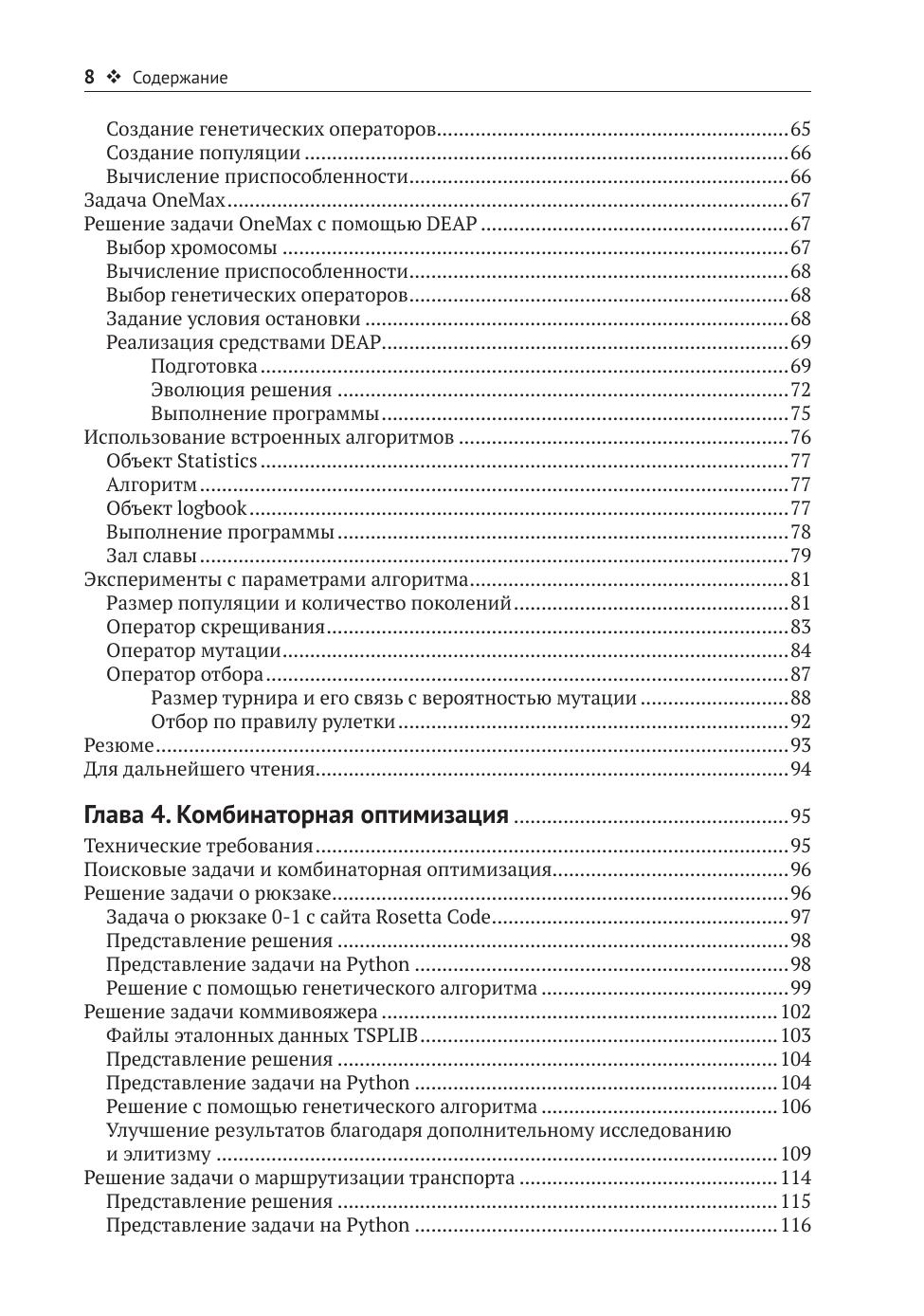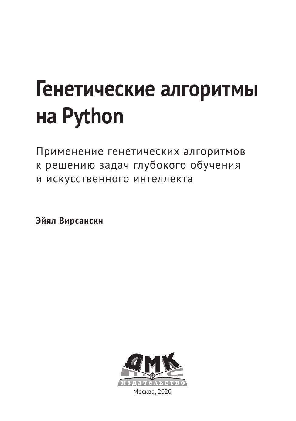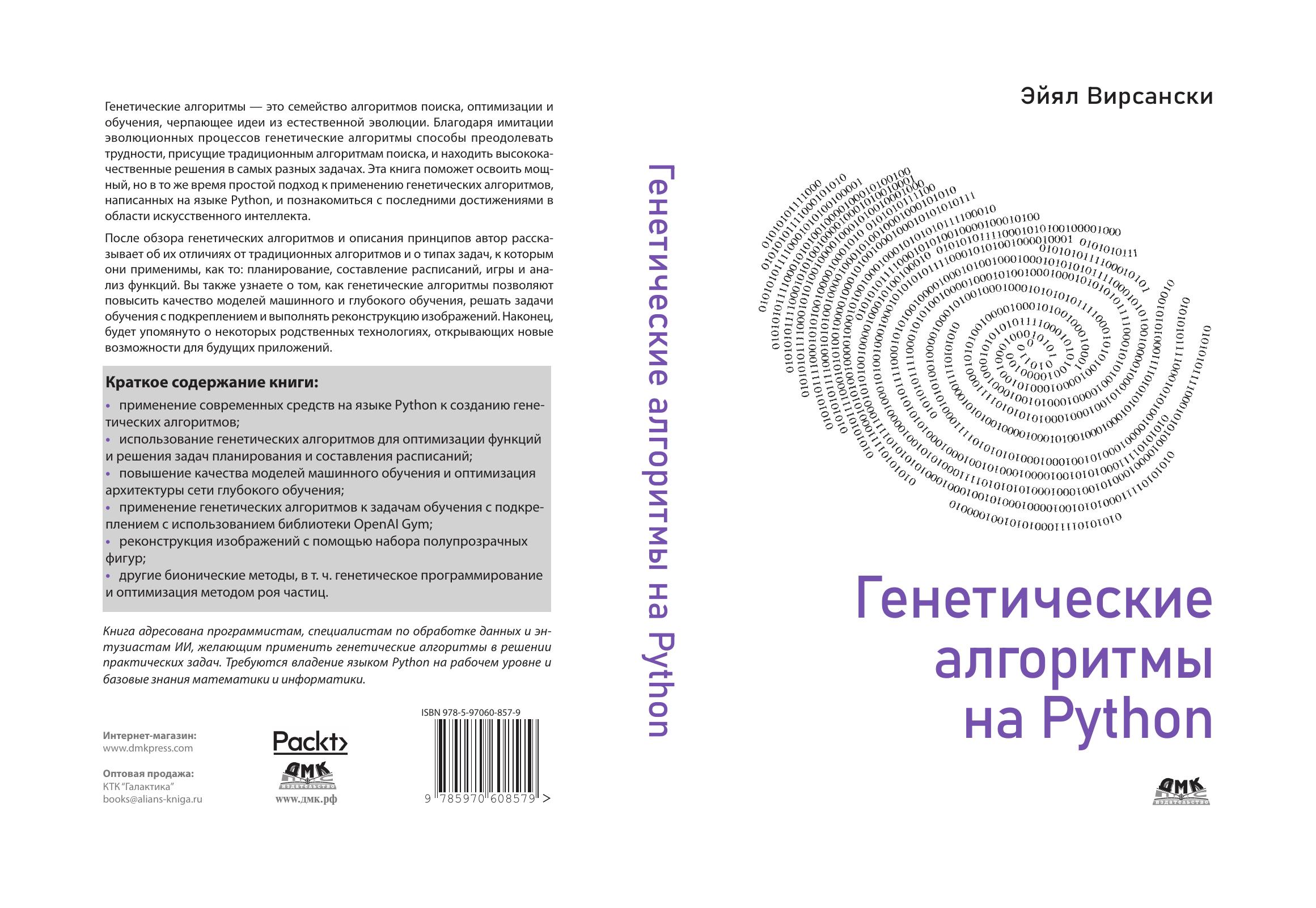 Генетические алгоритмы — это семейство алгоритмов поиска, оптимизации и обучения, черпающее идеи из естественной эволюции. Благодаря имитации эволюционных процессов генетические алгоритмы способы преодолевать трудности, присущие традиционным алгоритмам поиска, и находить высококачественные решения в самых разных задачах. Эта книга поможет освоить мощный, но в то же время простой подход к применению генетических алгоритмов, написанных на языке Python, и познакомиться с последними достижениями в области искусственного интеллекта.