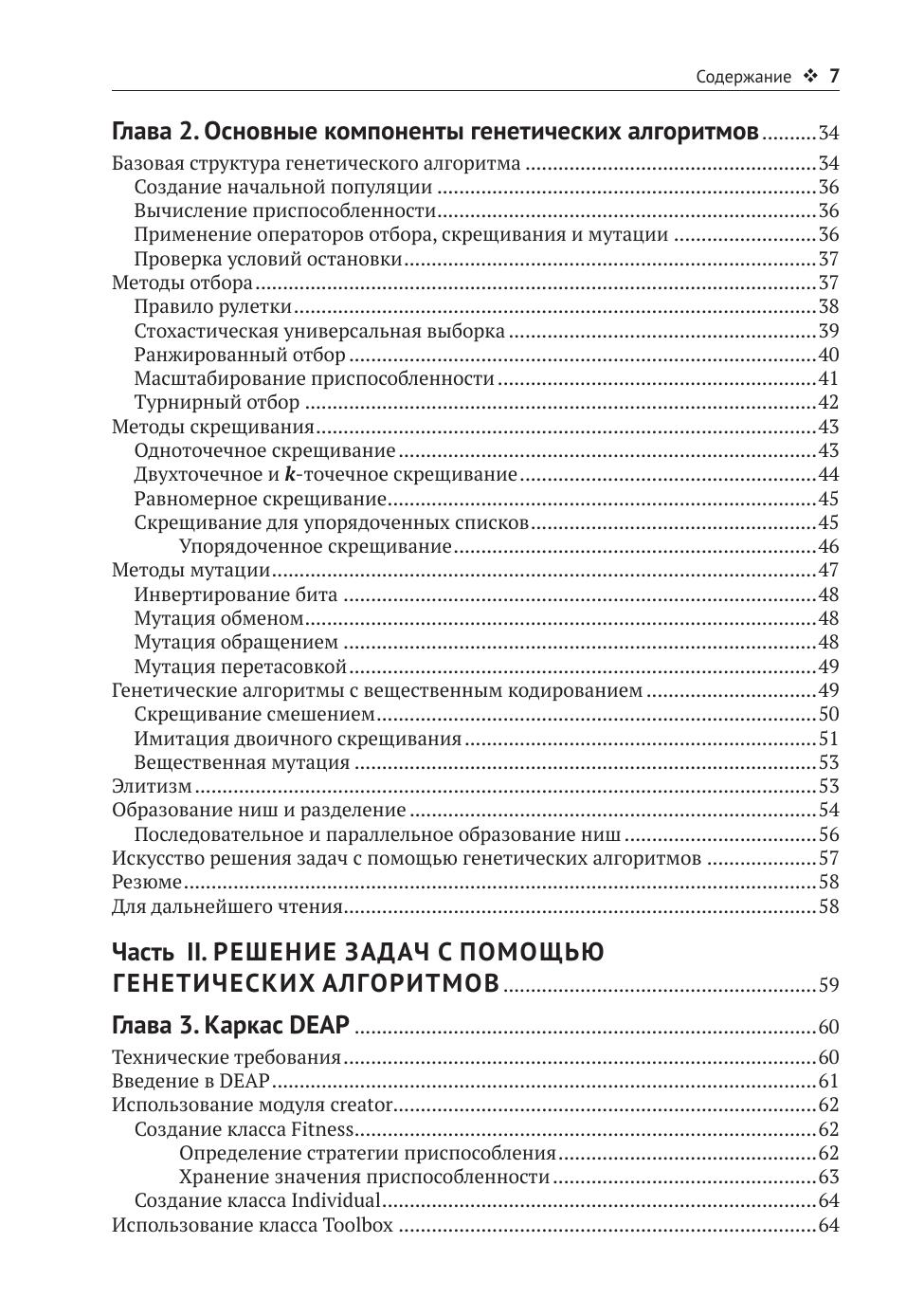 После обзора генетических алгоритмов и описания принципов автор рассказывает об их отличиях от традиционных алгоритмов и о типах задач, к которым они применимы, как то: планирование, составление расписаний, игры и анализ функций. Вы также узнаете о том, как генетические алгоритмы позволяют повысить качество моделей машинного и глубокого обучения, решать задачи обучения с подкреплением и выполнять реконструкцию изображений. Наконец, будет упомянуто о некоторых родственных технологиях, открывающих новые возможности для будущих приложений.