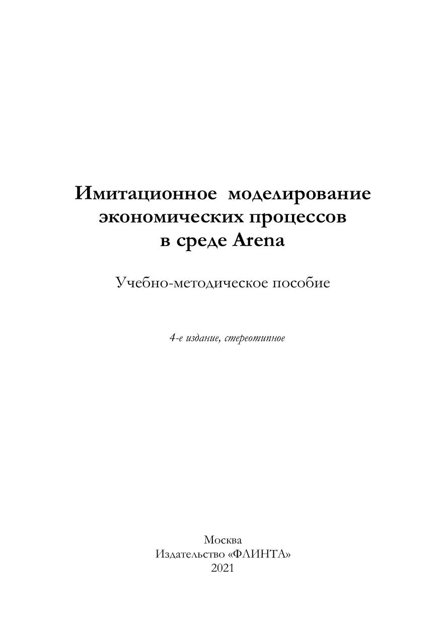 Пособие содержит материал практического характера по дисциплине «Имитационное моделирование экономических процессов», основные методы и приемы разработки компьютерных моделей в среде Arena. Оно адресовано студентам очного и заочного отделений высших учебных заведений, обучающимся по направлениям подготовки: 080801 – прикладная информатика в экономике, 080700 – бизнес-информатика.