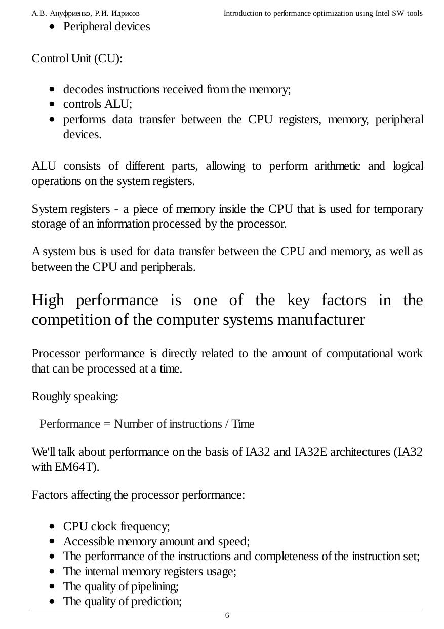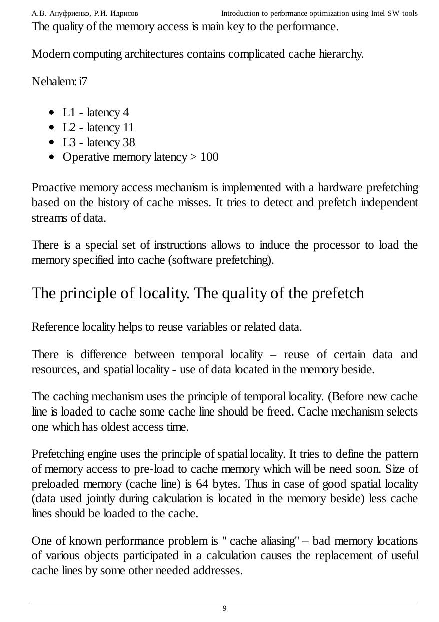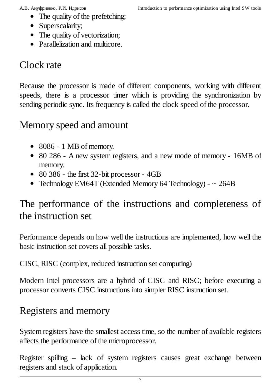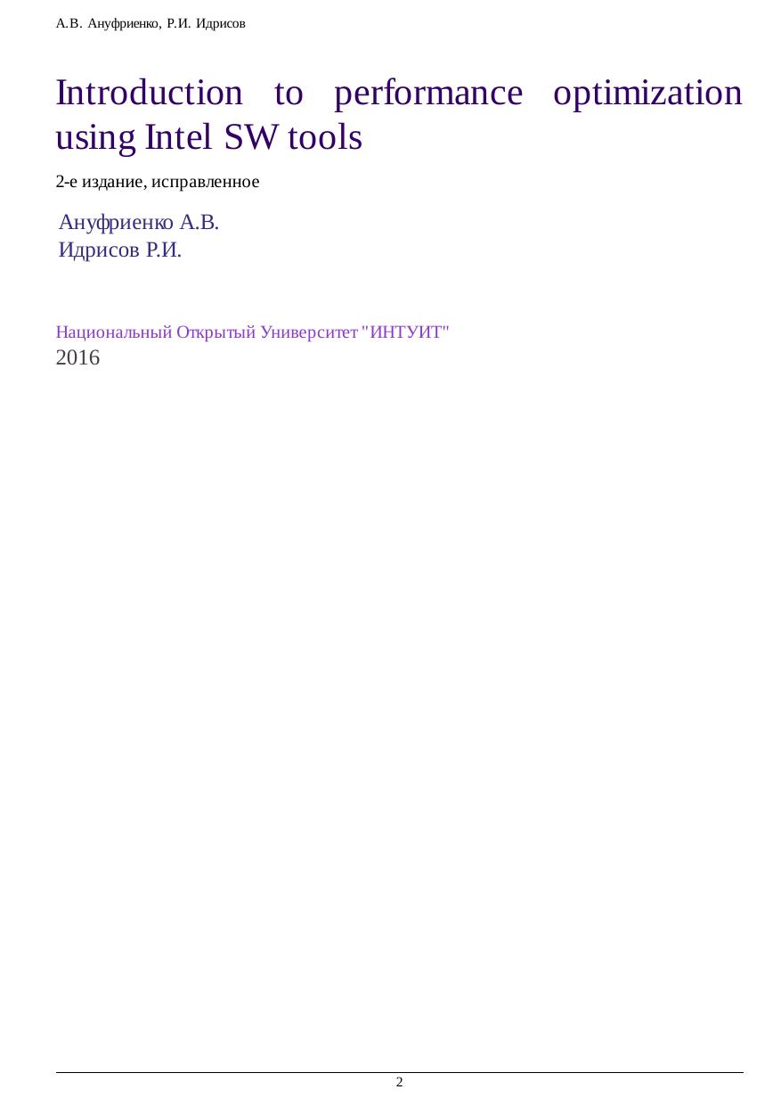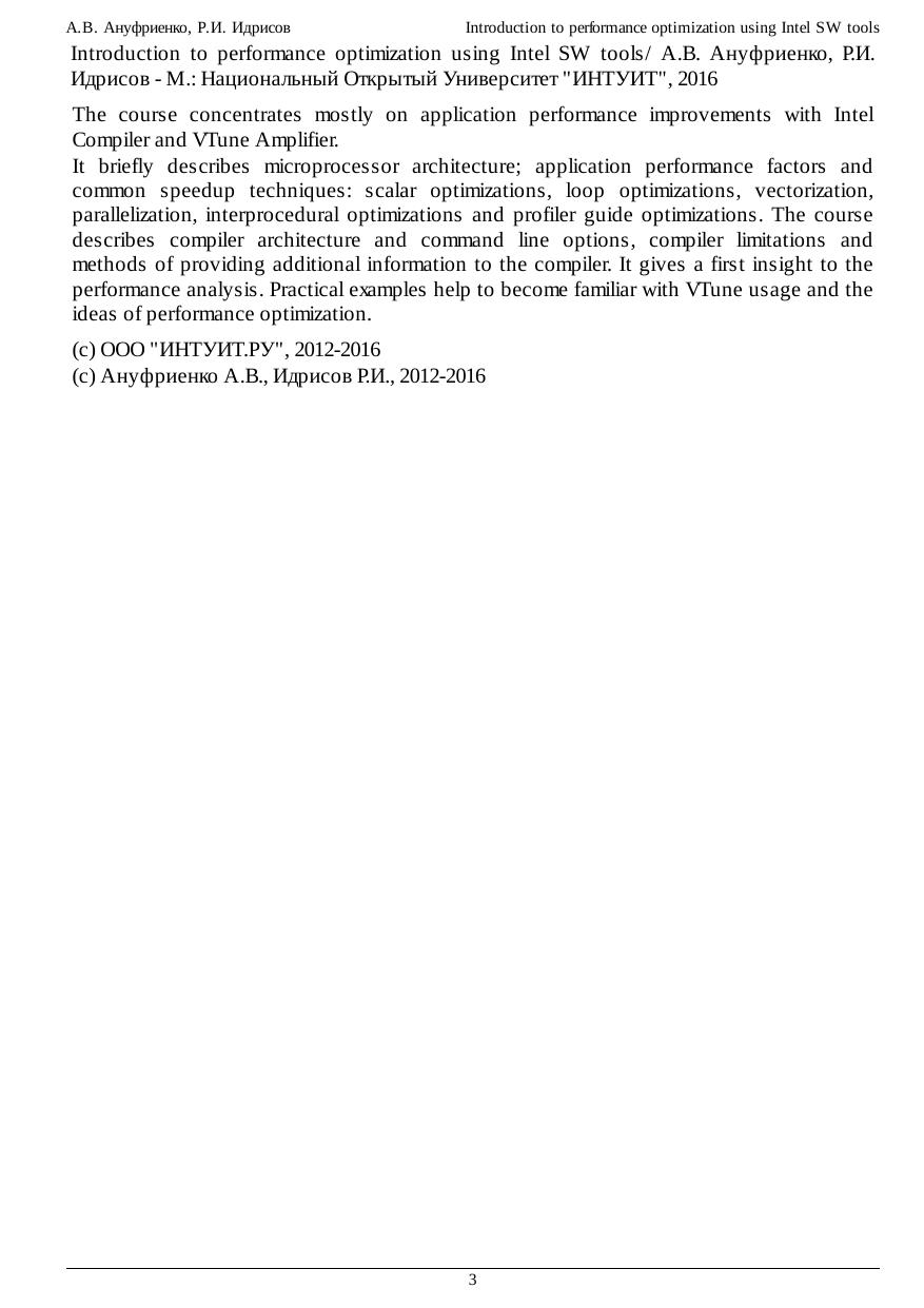 performance analysis. Practical examples help to become familiar with VTune usage and the ideas of performance optimization.