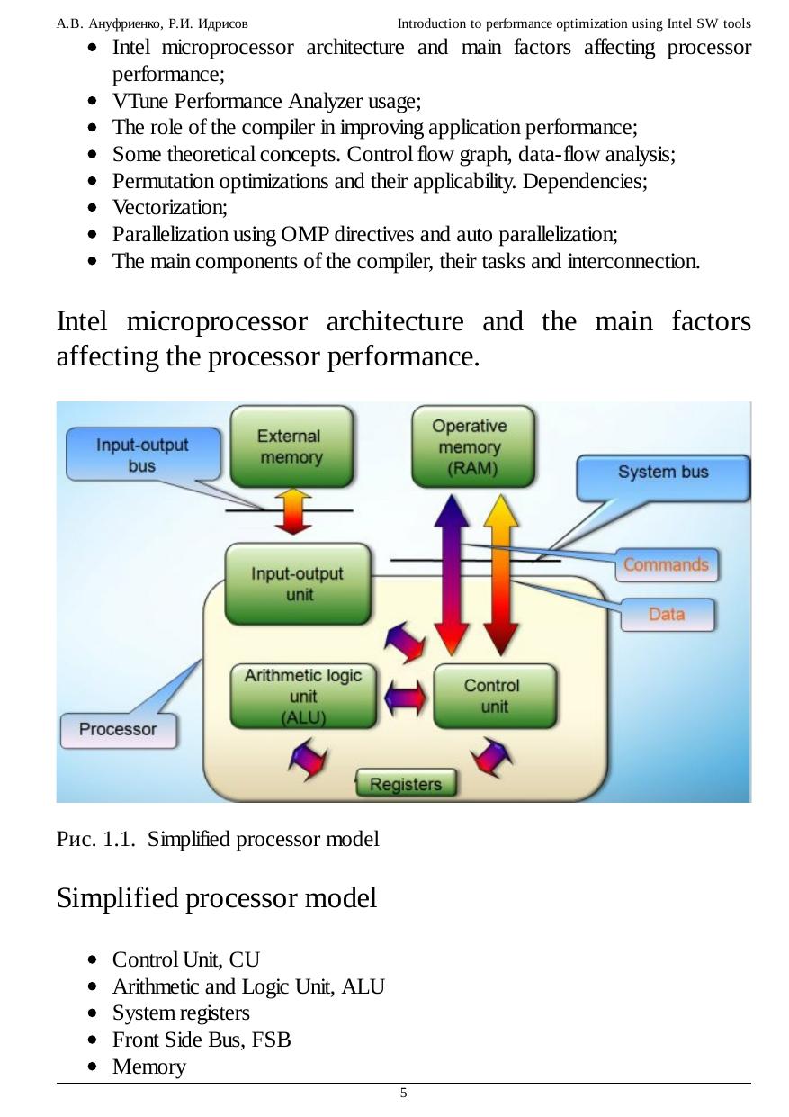 Introduction to performance optimization using Intel SW tools ч