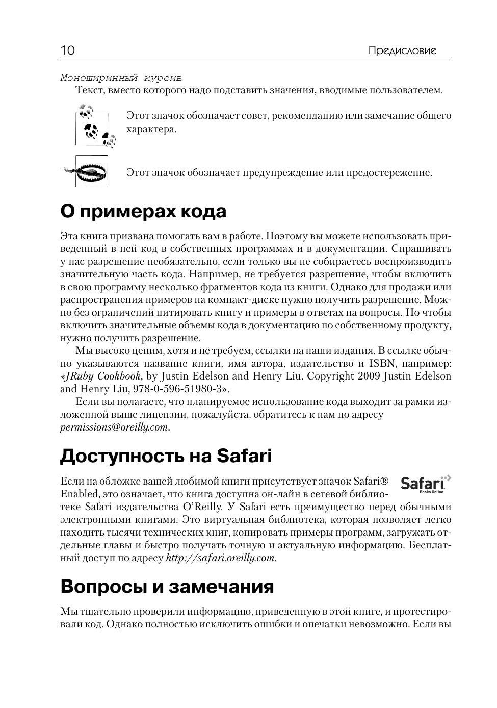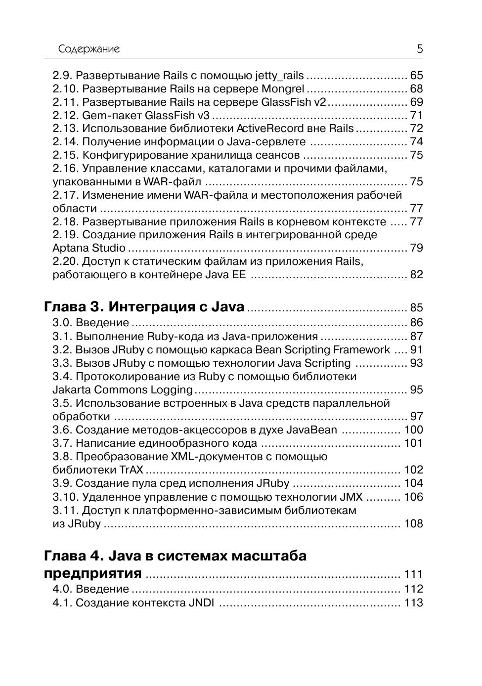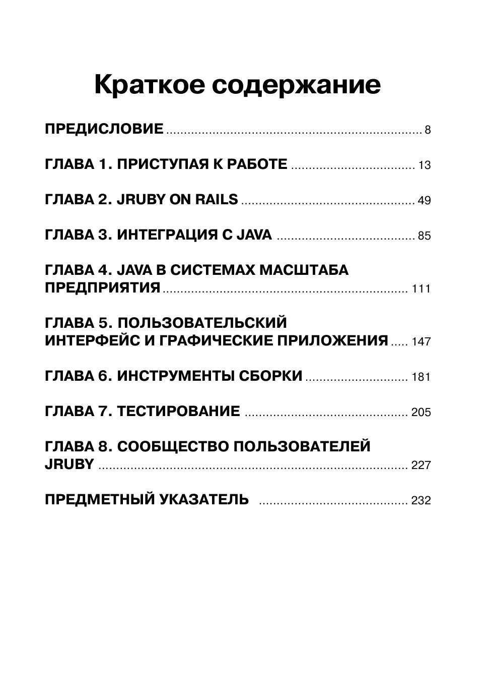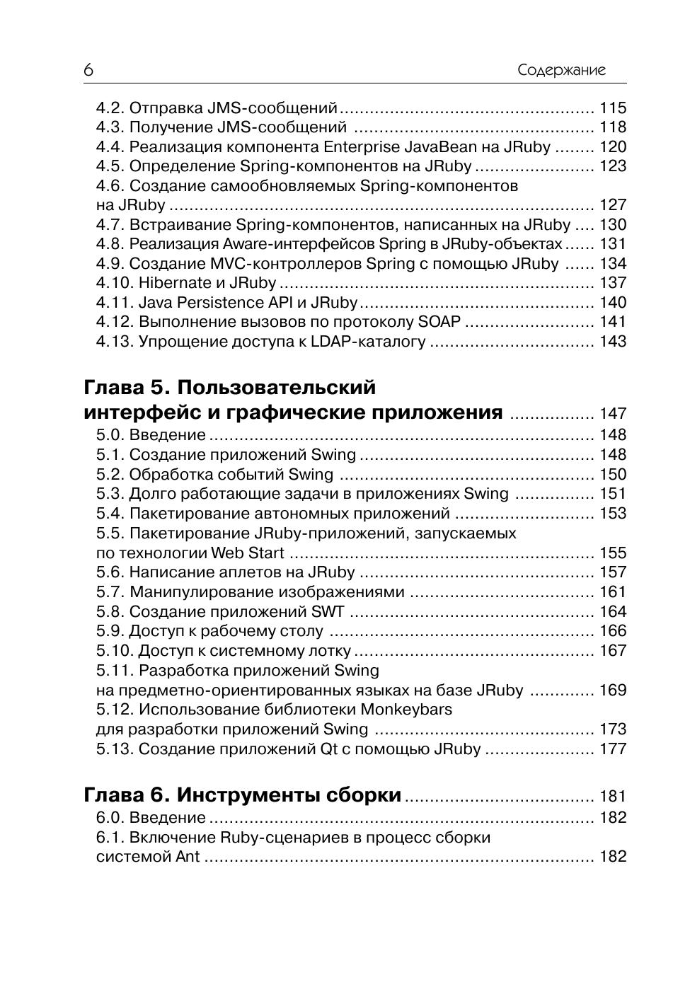 Интересующемуся языком JRuby вряд ли нужны руководства по Ruby, Rails или Java – требуется лишь узнать, как решить ту или иную конкретную задачу. В этой книге вы найдете практические рецепты по работе с данной реализацией языка Ruby на платформе Java. Специально рассмотрены такие вопросы, как развертывание веб-приложений Rails на Java-серверах, интеграция программ на JRuby с технологиями из мира Java, разработка персональных приложений на JRuby с помощью инструментальных библиотек на Java и многое другое. Интерпретатор JRuby сочетает в себе простоту и легкость использования Ruby с развитыми библиотеками и технологиями Java, и это открывает совершенно новые возможности для применения Ruby, Rails и Java. Эта книга даст вам возможность воспользоваться всем потенциалом языка Jruby.