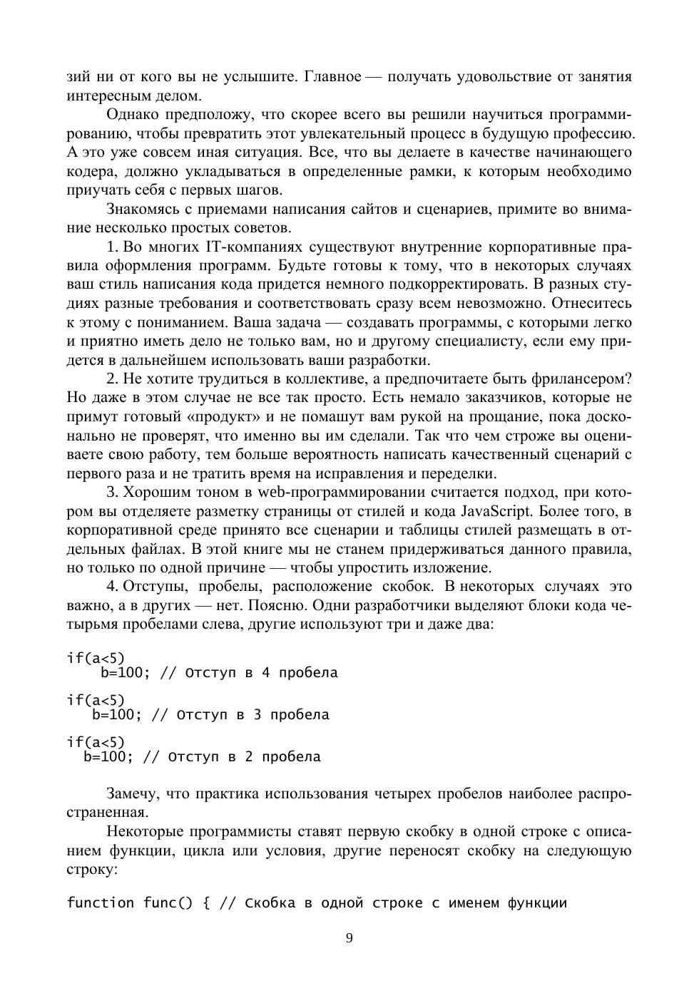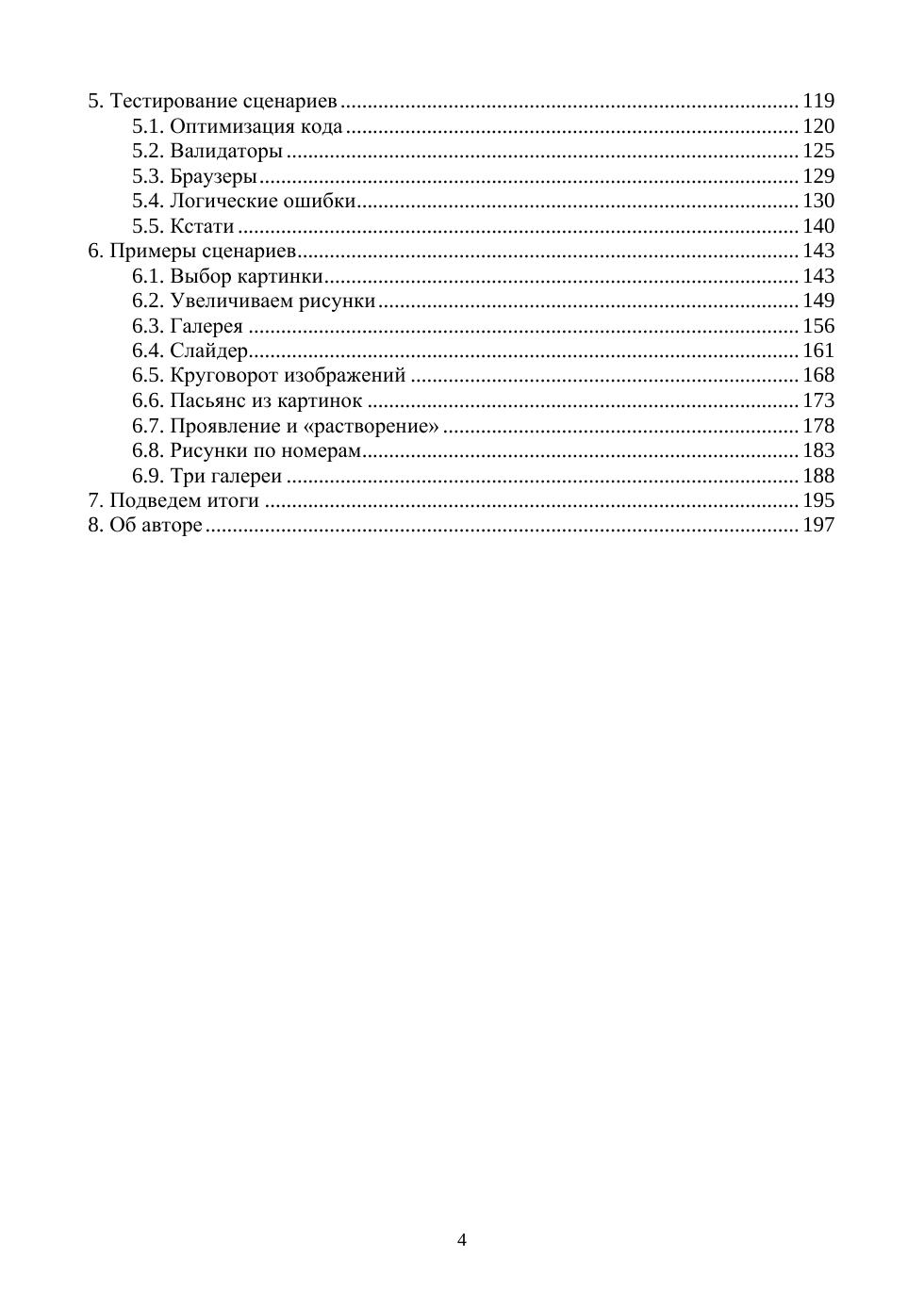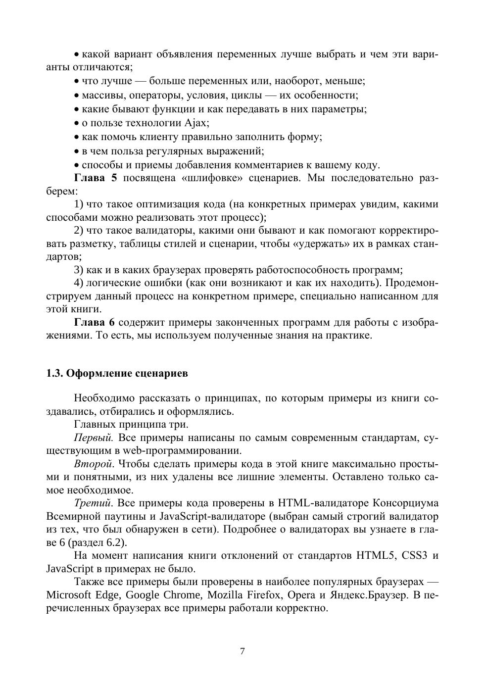 В книге рассматриваются все этапы написания сценариев на JavaScript: от появления идеи до финальных испытаний. Читатели узнают, как происходят: подготовка среды разработки на персональном компьютере, формирование алгоритма выполнения проекта, освоение приемов написания качественных сценариев, работа с переменными, массивами, операторами, регулярными выражениями, функциями, тестирование, отладка и стандартизация кода. Особое внимание уделено методам, приемам и навыкам, которые помогут разработчику упростить создание Интернет-проектов. Кроме того, подробно разобраны примеры нескольких готовых сценариев. Соответствует современным требованиям Федерального государственного образовательного стандарта среднего профессионального образования и профессиональным квалификационным требованиям. Рекомендовано в качестве дополнительной литературы для студентов, обучающихся в средних профессиональных учебных заведениях по направлению «Информатика и вычислительная техника». К книге прилагаются дополнительные материалы, доступные в электронной библиотечной системе «Лань» по ссылке или QR-коду, указанным ниже.