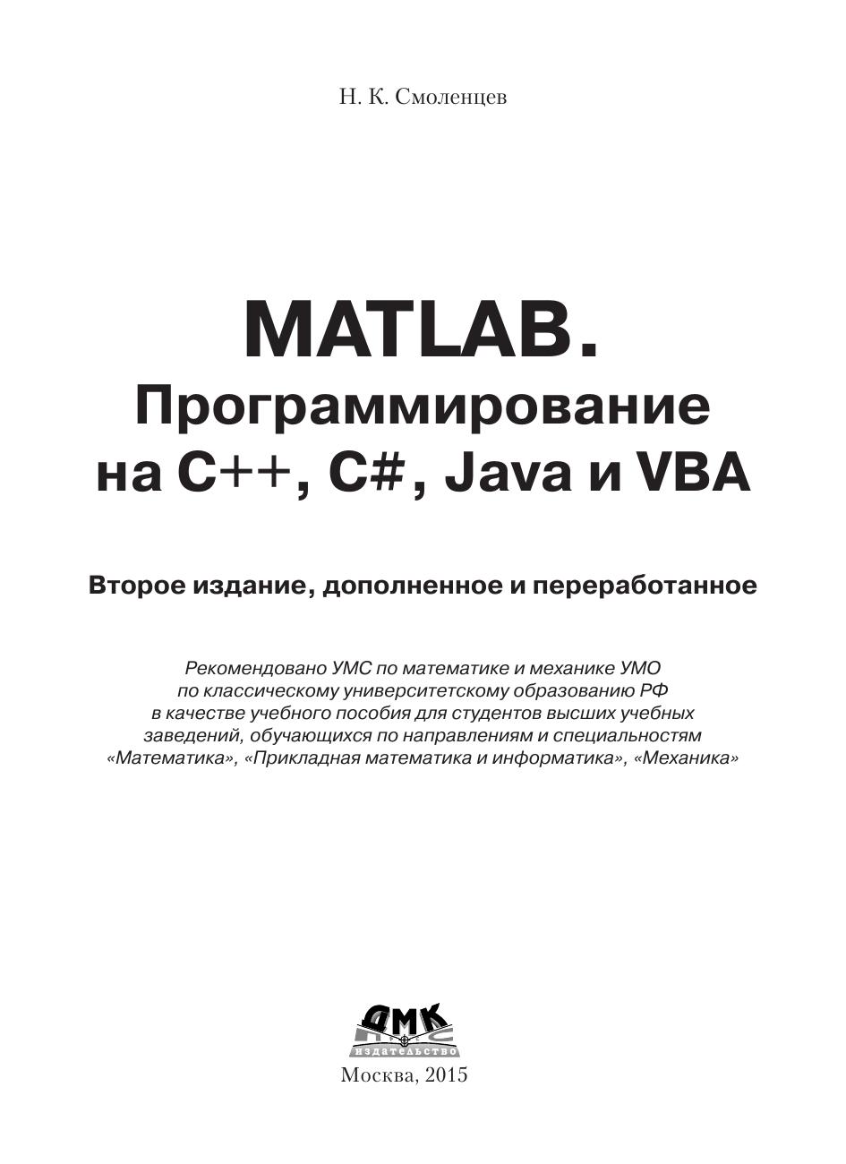 MATLAB. Программирование на С++, С#, Java и VBA