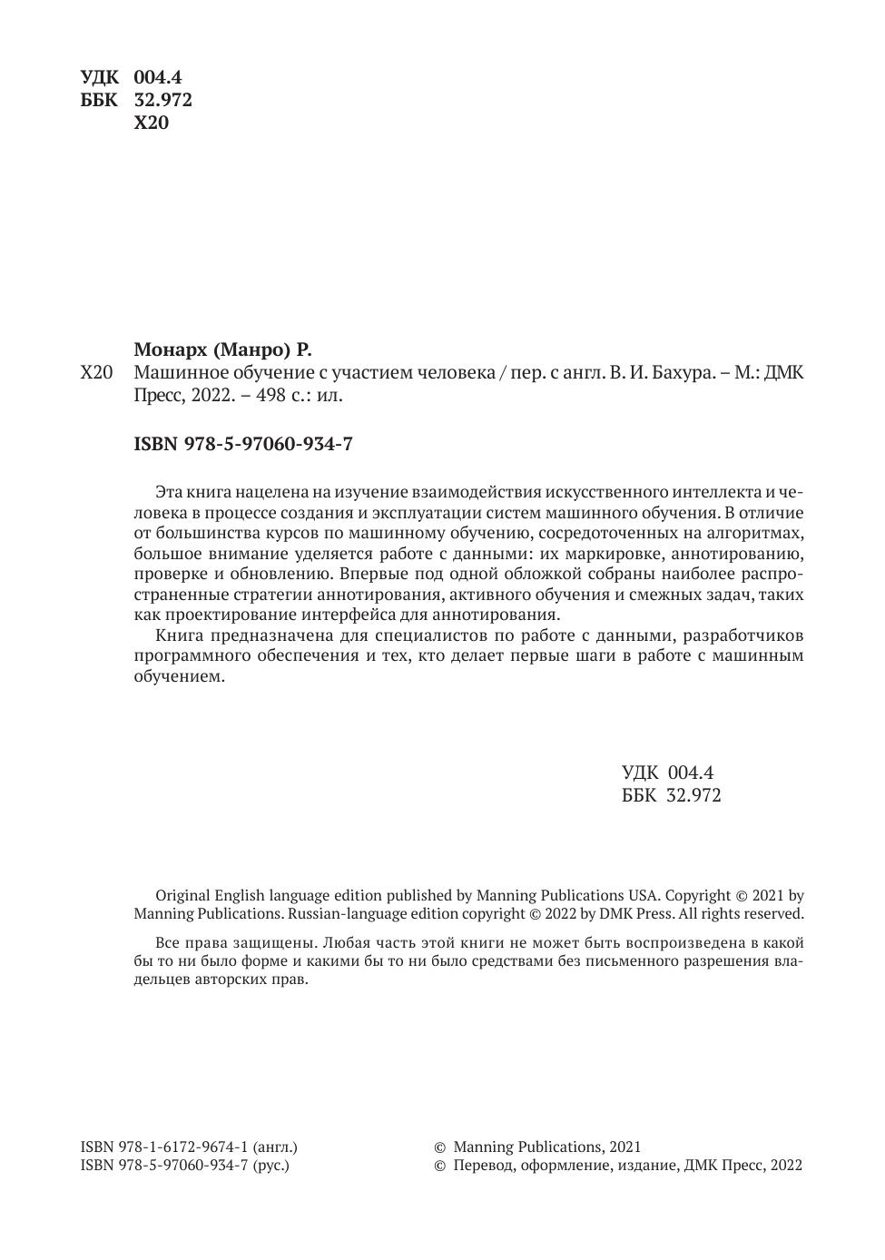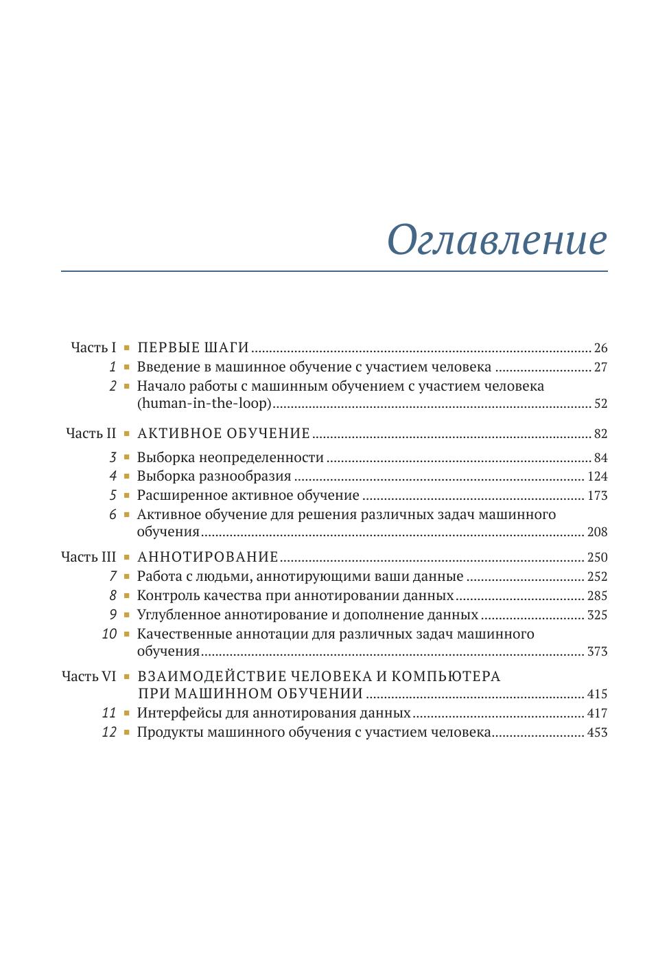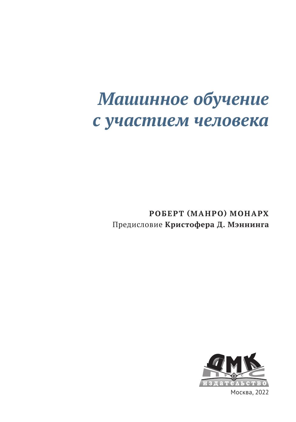 В книге изложены методики эффективной совместной работы людей и машин. Здесь вы найдете лучшие практики по выбору образцов данных для обратной связи с человеком, контролю качества аннотаций человека и разработке интерфейсов аннотаций.