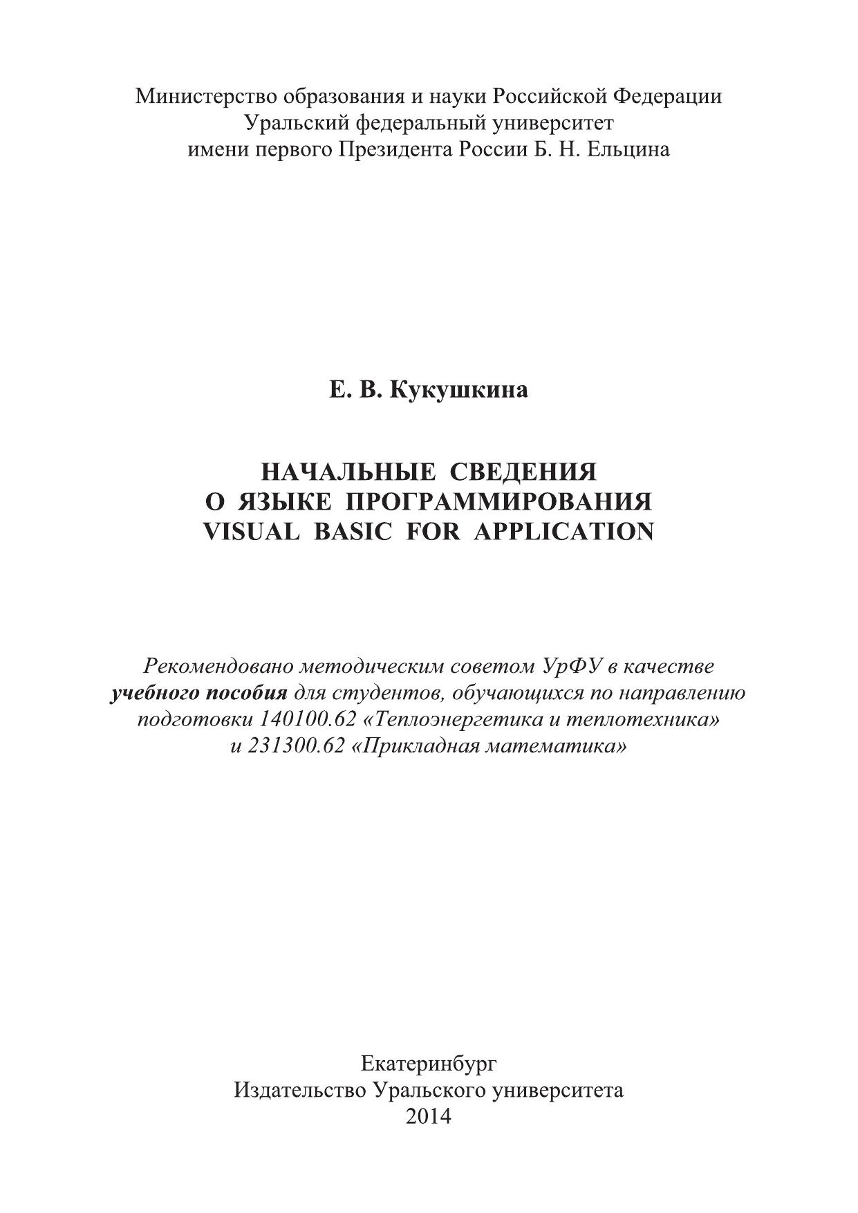 Начальные сведения о языке программирования Visual Basic for Application: учебное пособие